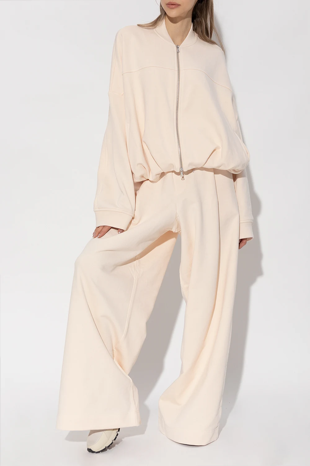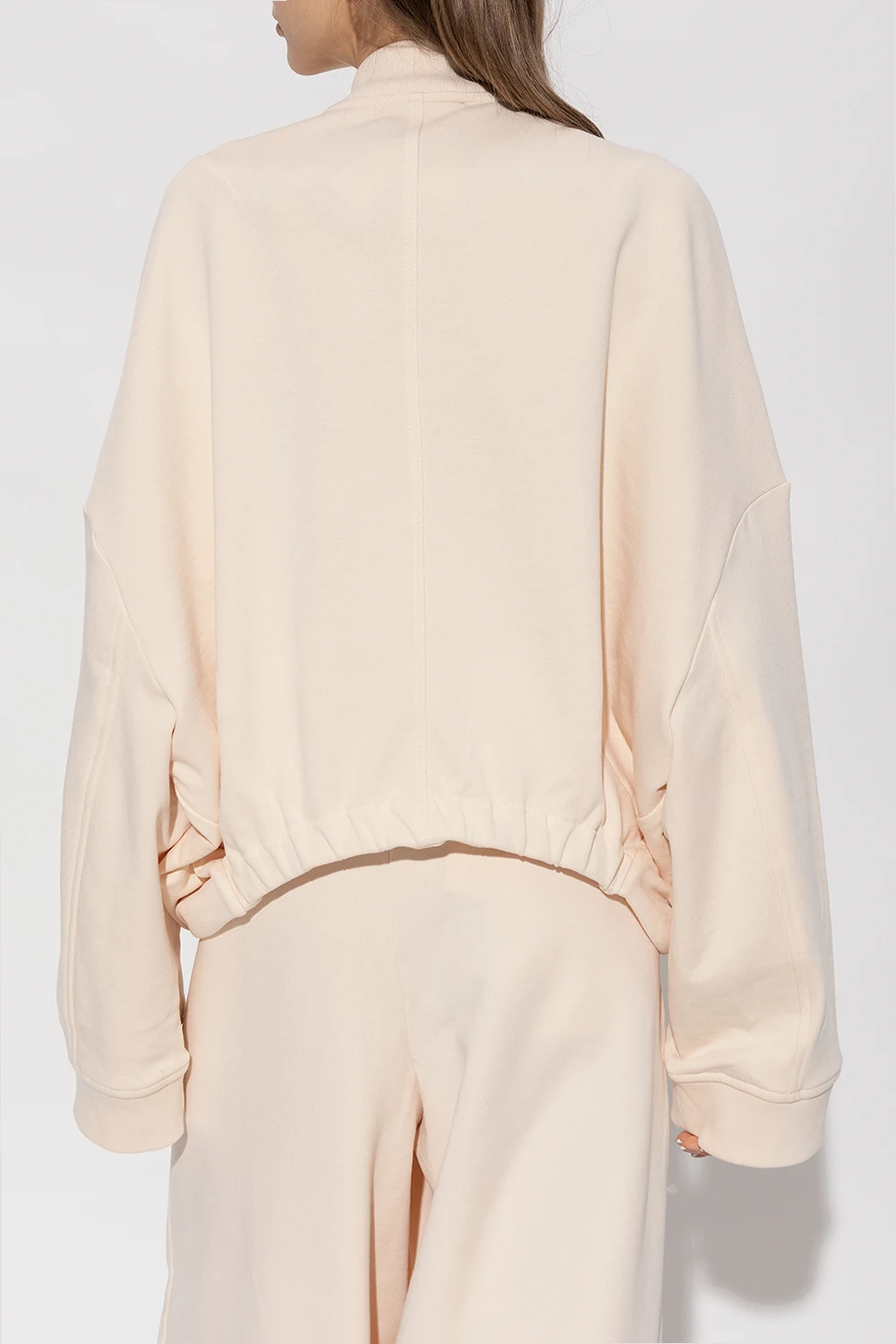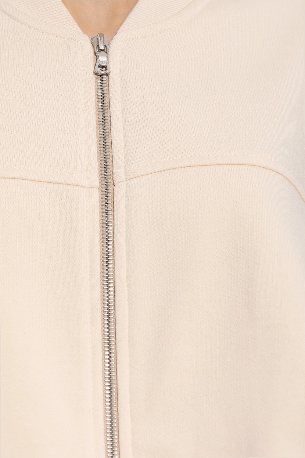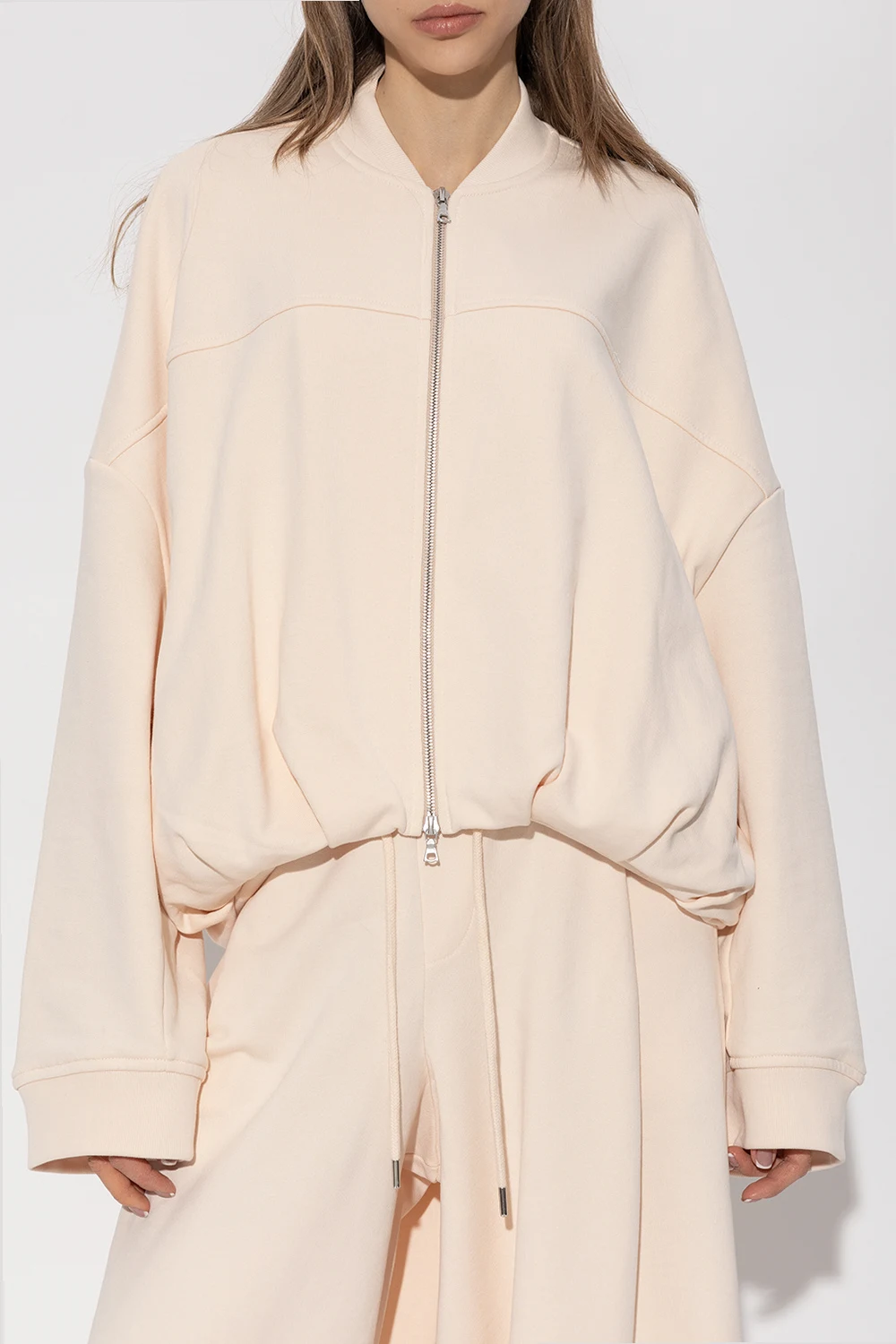 Kremowa, bawełniana bluza o luźnym kroju Dries Van Noten. Zapinana na dwubiegunowy zamek. Dół ściągany trokami. Z przodu dwie kieszenie. Kołnierz i długie rękawy zakończone ściągaczem.