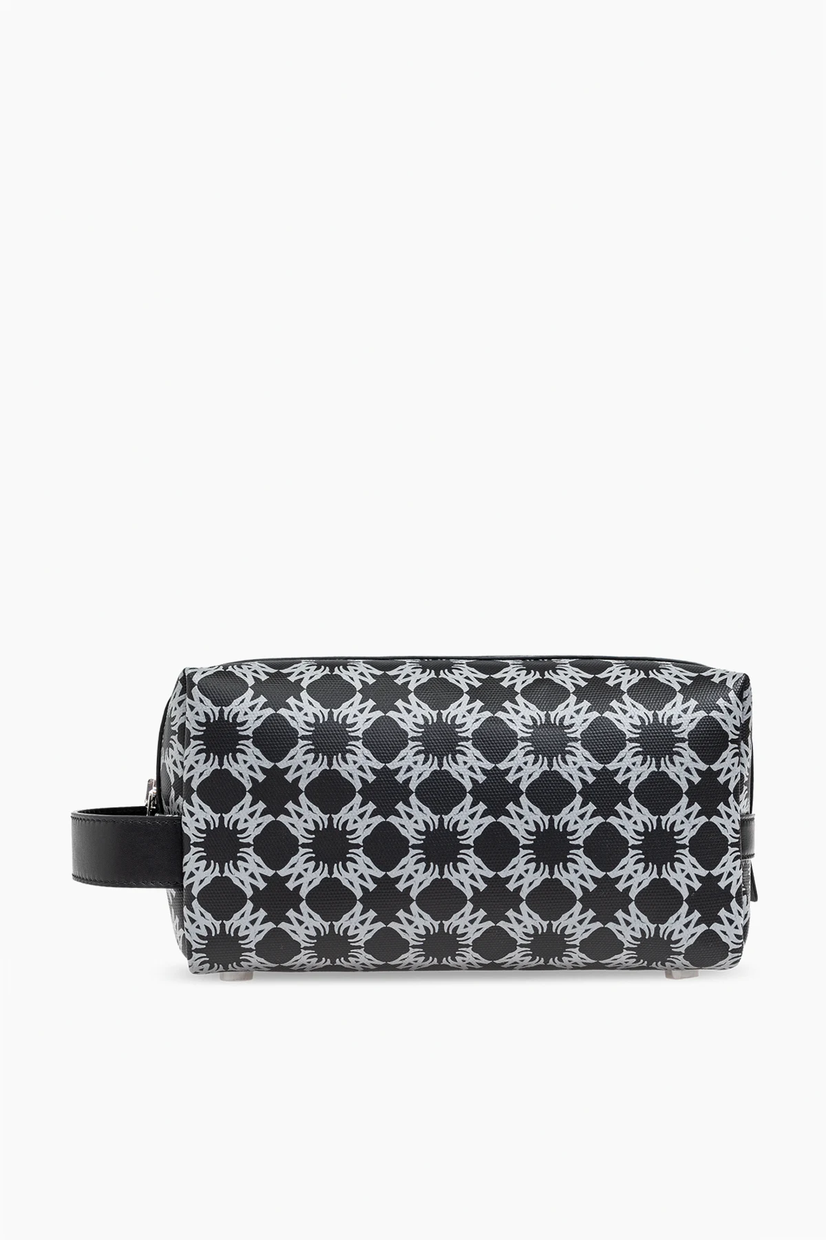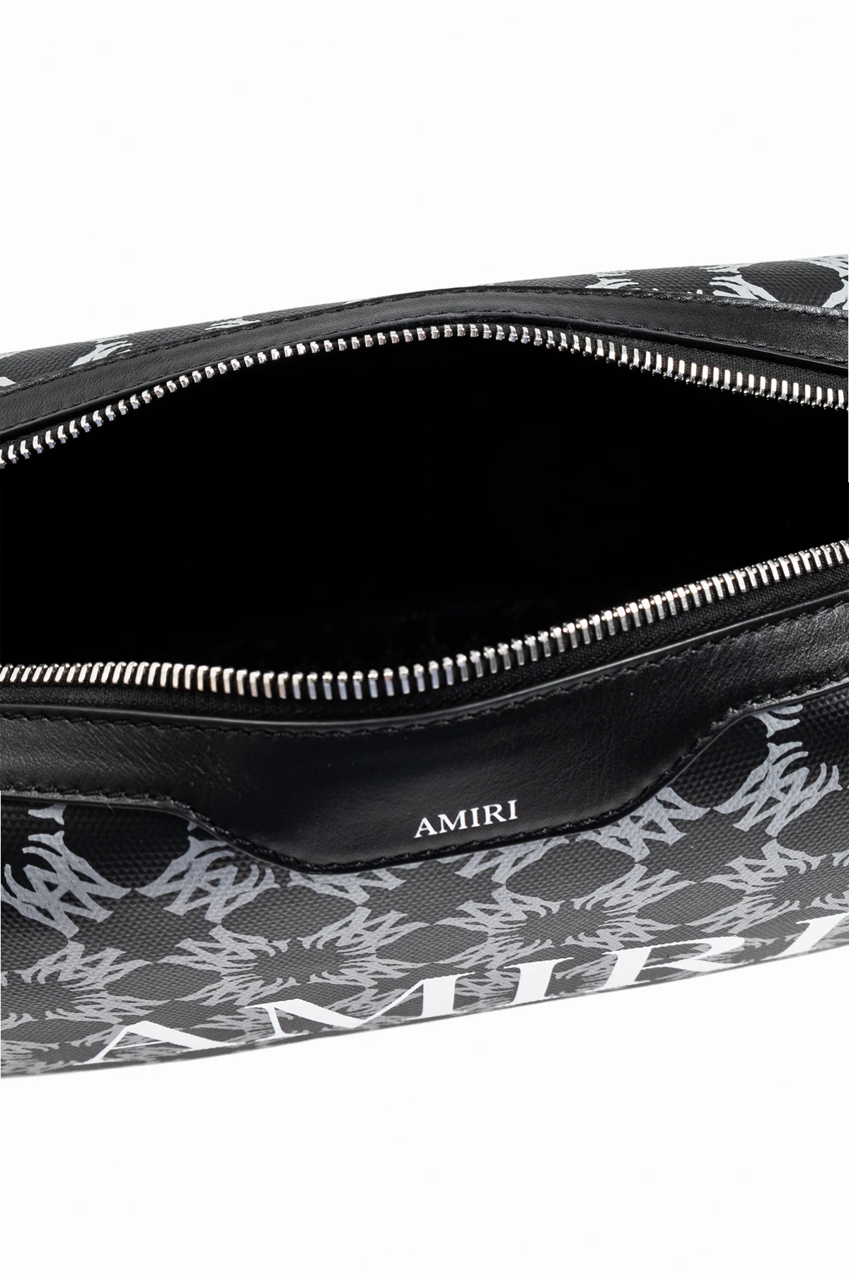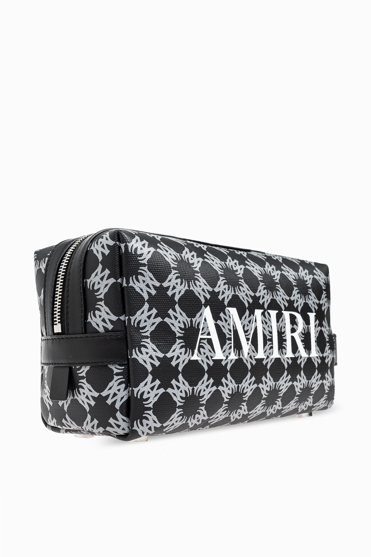 Wykonana z najwyższej jakości płótna, kosmetyczka zachwyca trwałością i delikatną fakturą. Dominujący czarny kolor kontrastuje z białym, powtarzającym się monogramem oraz wyrazistym logo "AMIRI", nadając jej niepowtarzalny charakter.