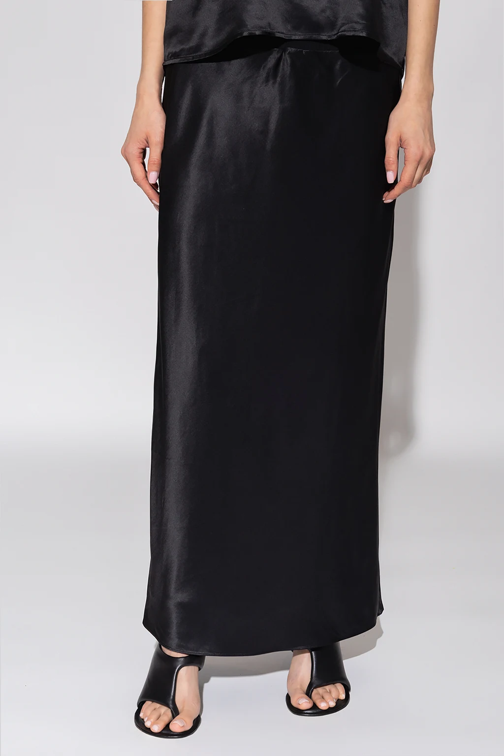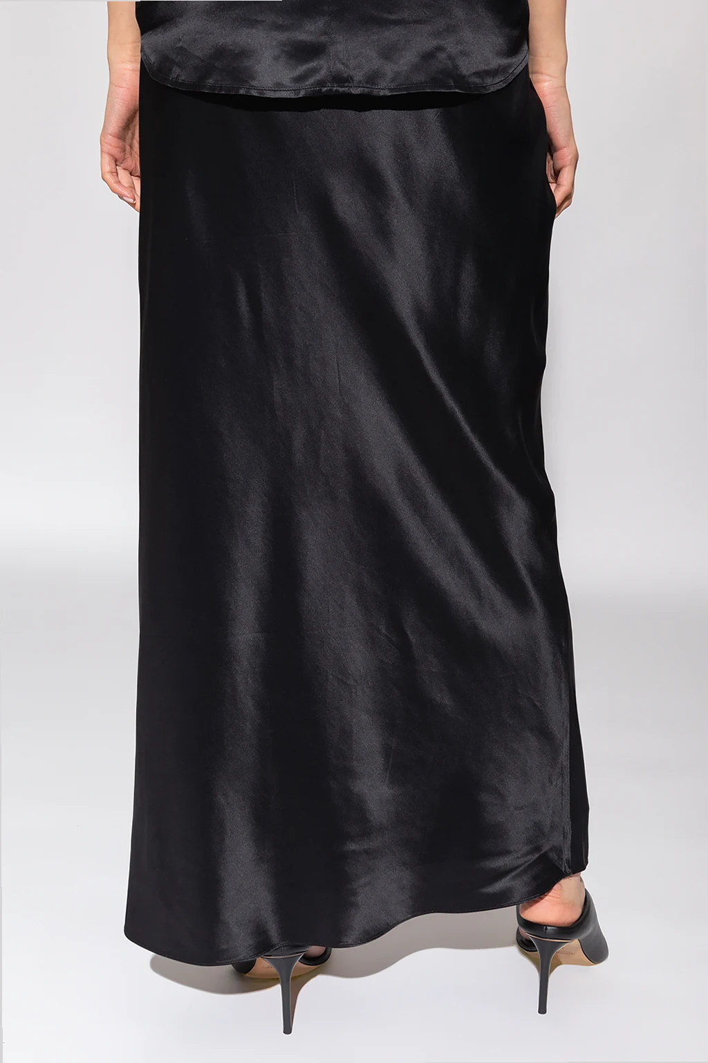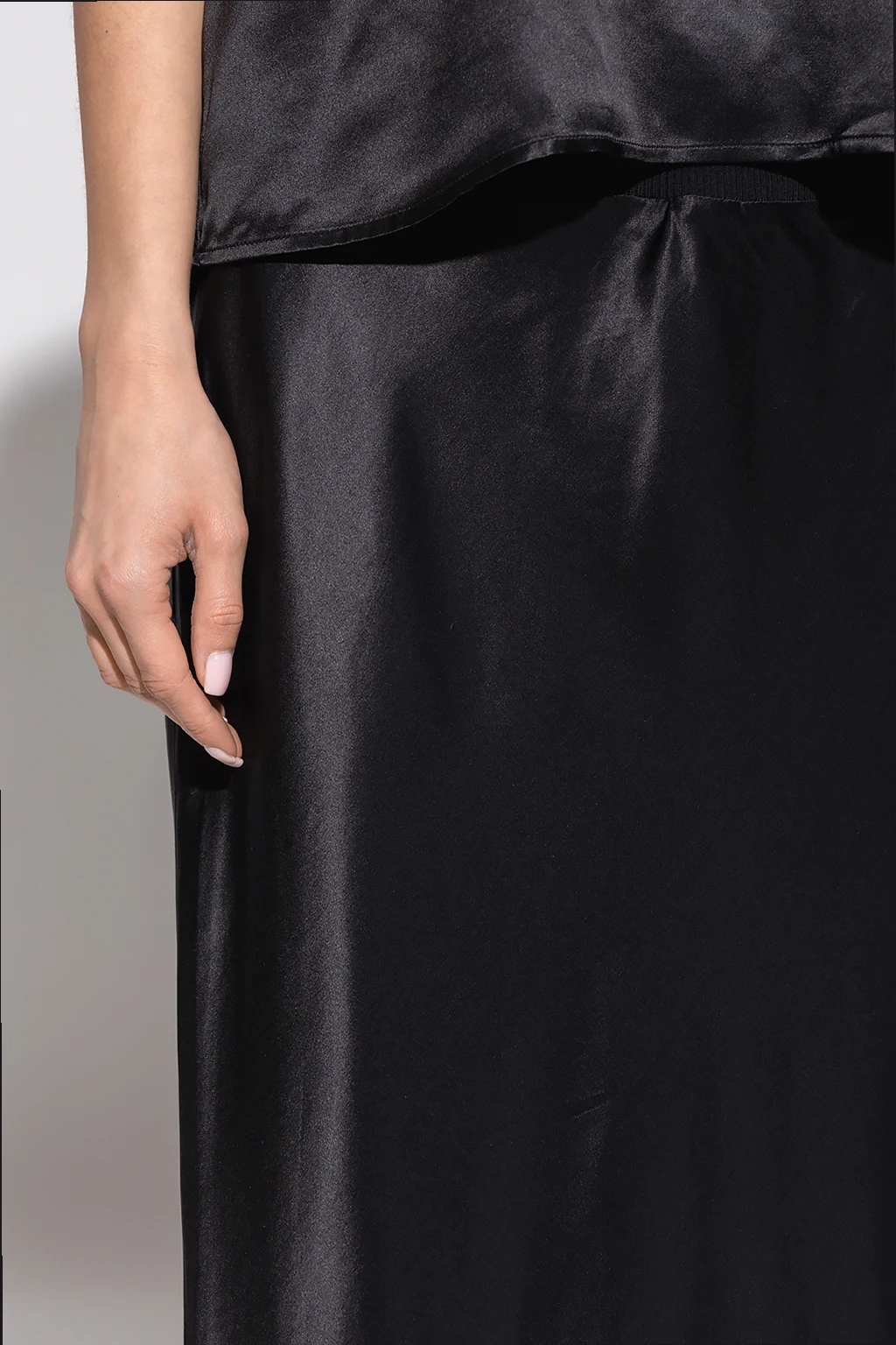 Czarna, satynowa spódnica na gumkę, model ‘John’ Birgitte Herskind. Wykonana z ekologicznej wiskozy Ecovero oraz jedwabiu. Krój inspirowany minimalistycznymi sylwetkami z lat 90. z lekko rozszerzanym dołem.