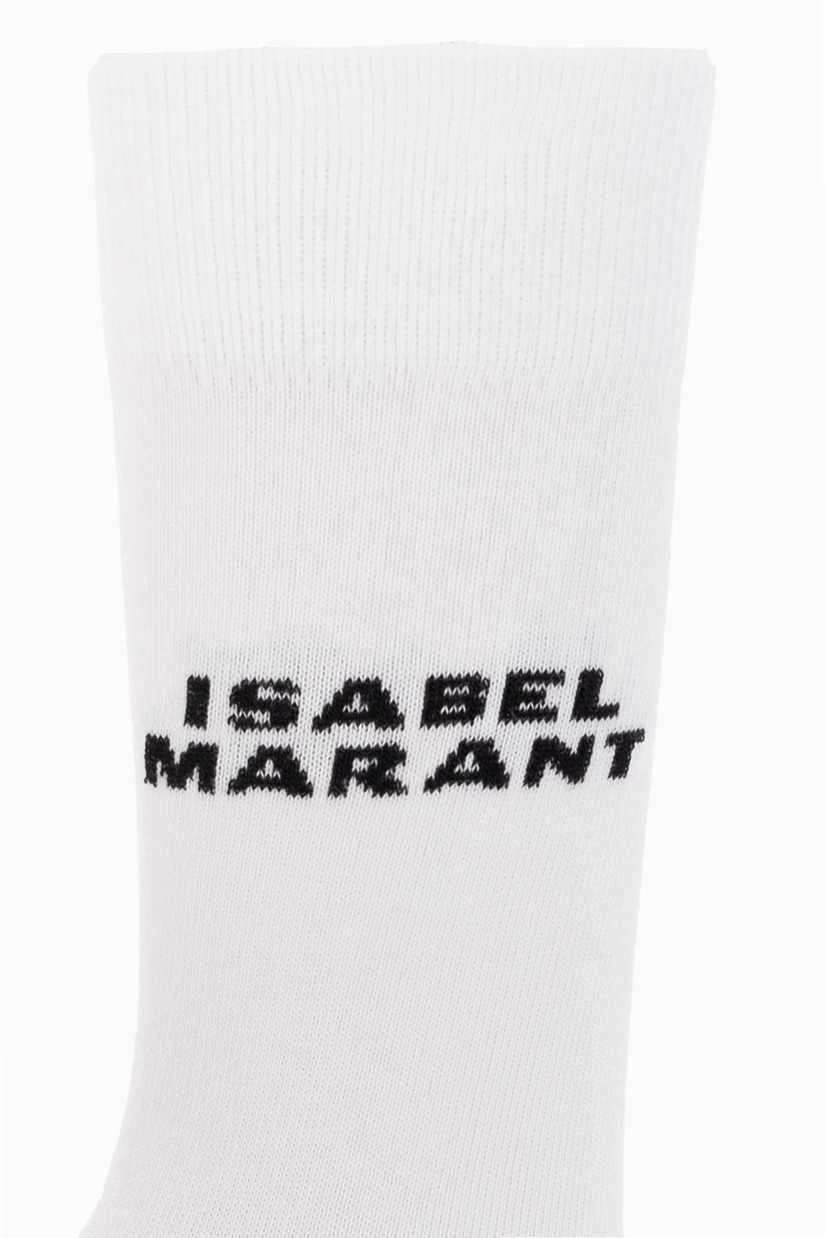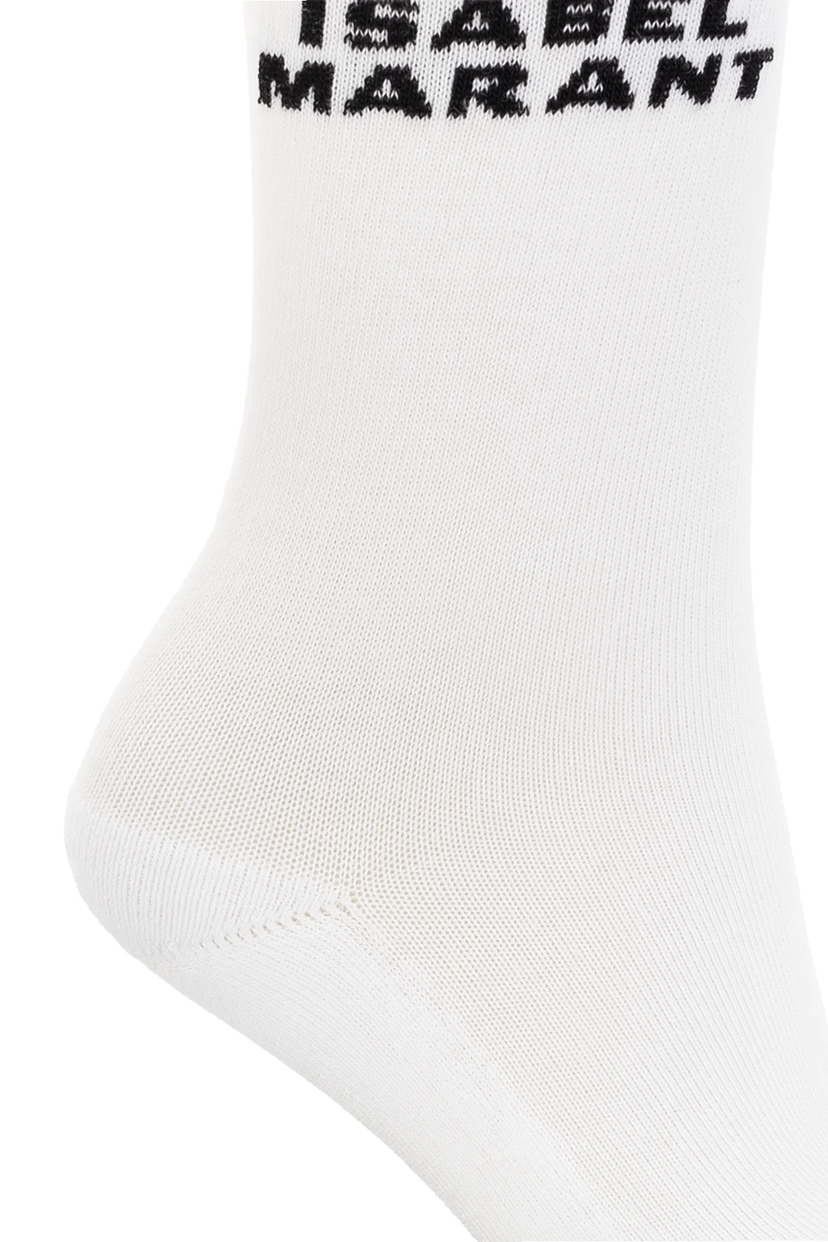 Białe skarpety, model ‘Dawi’ Isabel Marant. Wykonane z bawełny. Ozdobione czarnym wzorem z logo.