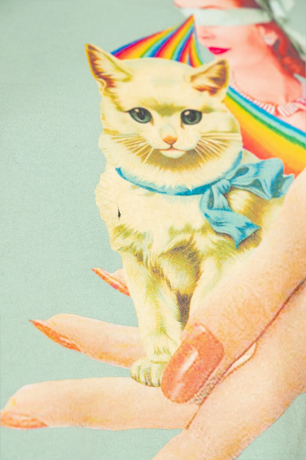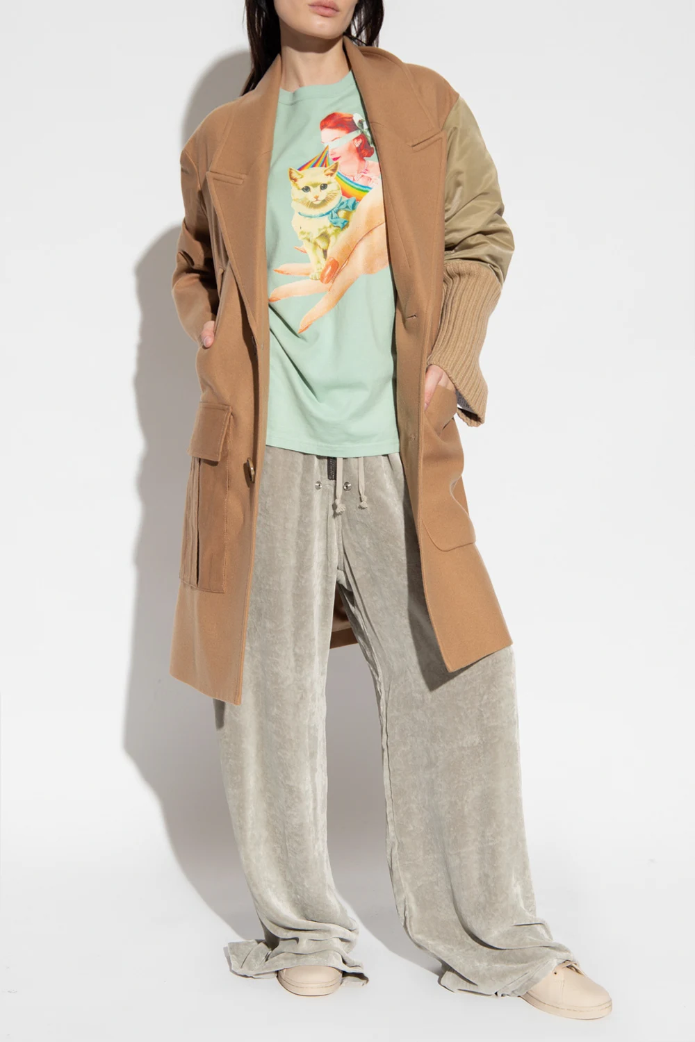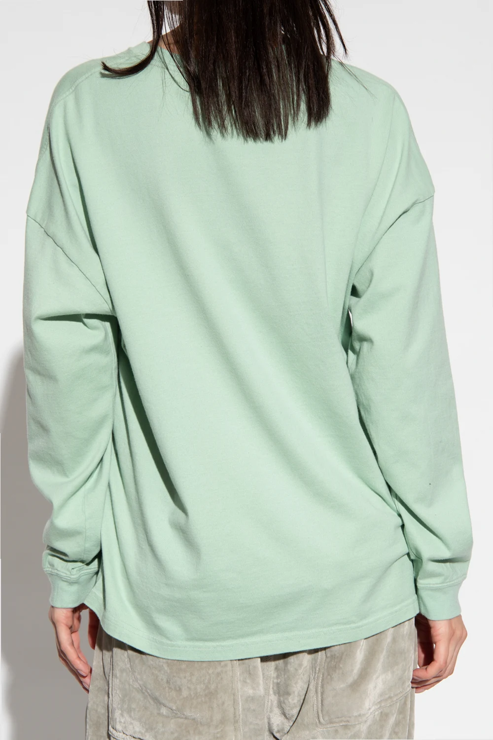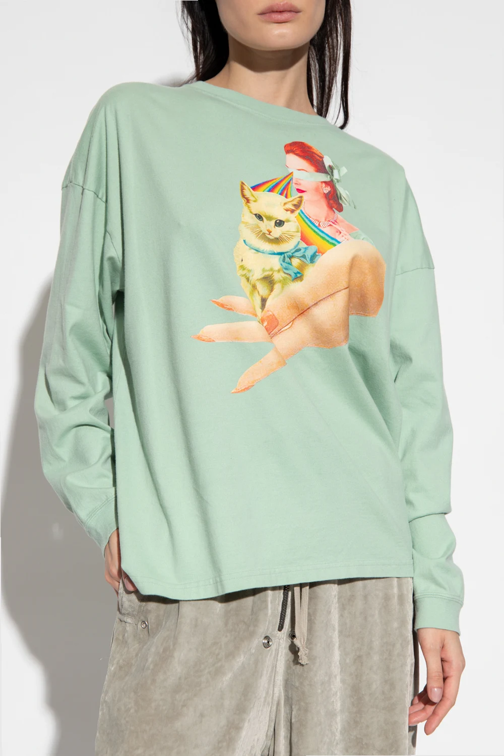 Zielony t-shirt Undercover. Wykonany z bawełny. Ozdobiony nadrukowanym wzorem z motywem zwierzęcym. Okrągły dekolt i długie rękawy wykończone ściągaczem.
