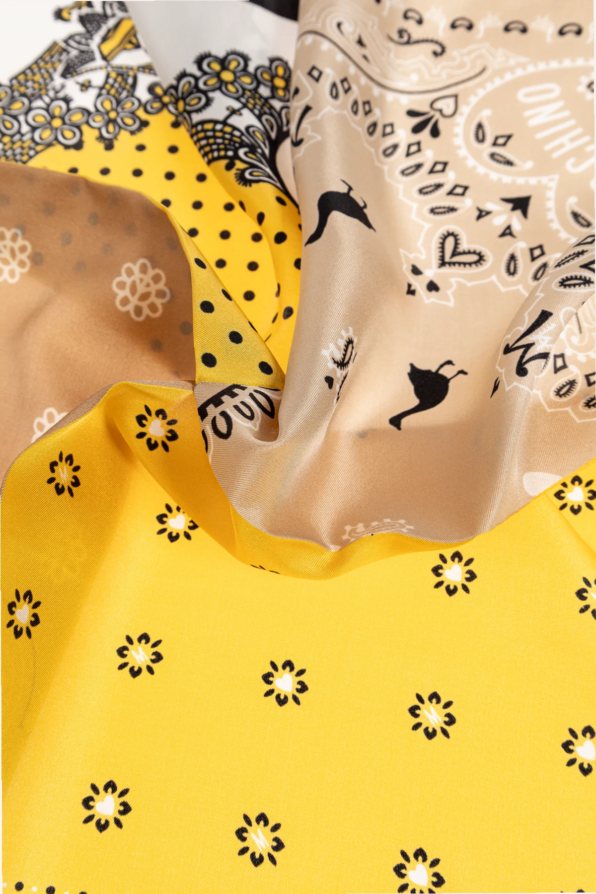 Jedwabna poszetka marki Moschino to wyrafinowany dodatek, stworzony z myślą o koneserach stylu ceniących najwyższą jakość. Klasyczny, kwadratowy kształt i staranne czarne obszycie podkreślają ponadczasową elegancję wyrobu.