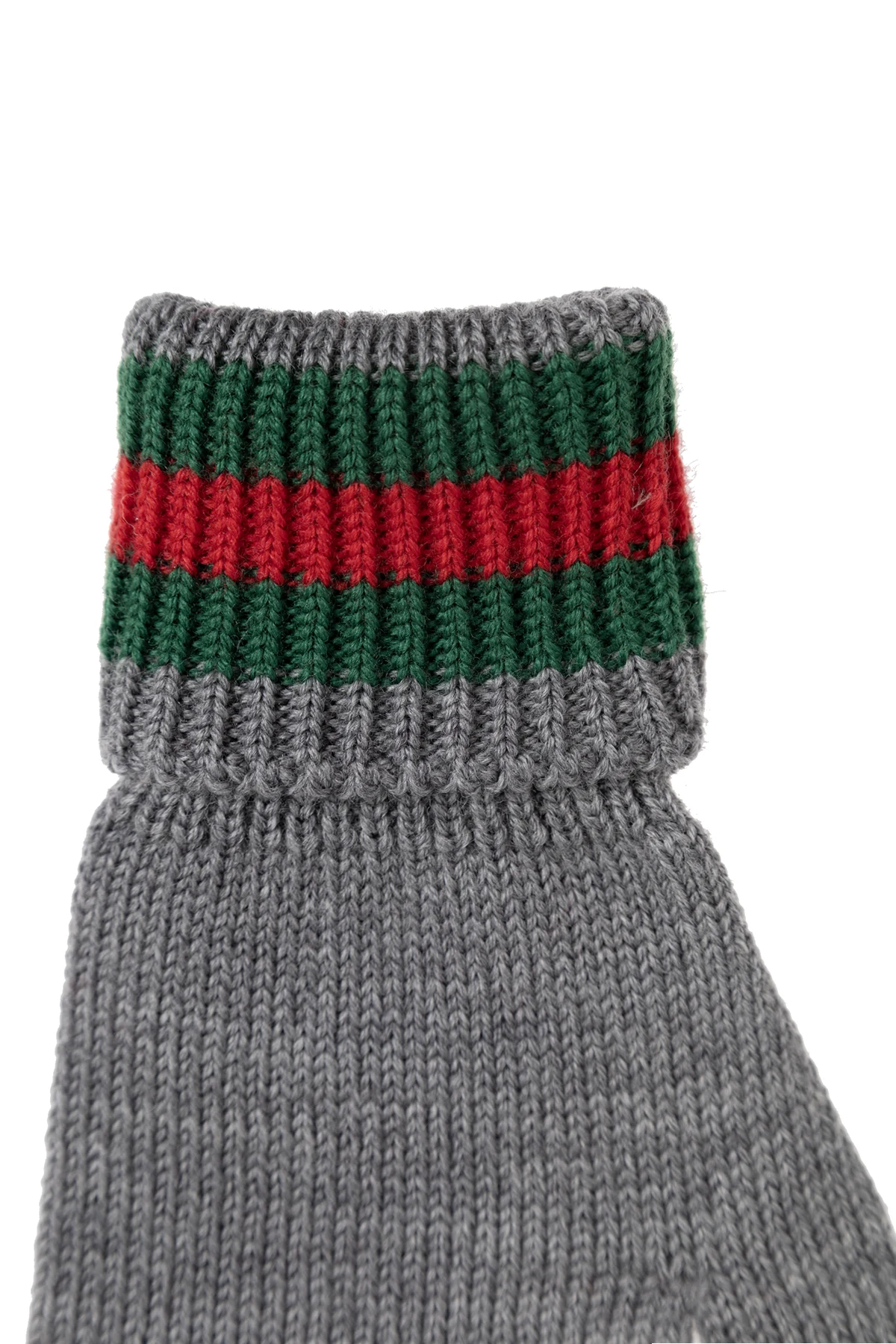Przedstawiamy wełniane rękawiczki z ekskluzywnej kolekcji odzieżowej Gucci Kids . Te eleganckie rękawiczki zostały wykonane z najwyższej jakości wełny, zapewniając doskonałe ciepło i komfort noszenia. Klasyczny pięciopalczasty kształt oraz jednolity, szary wzór sprawiają, że są one idealnym dodatkiem do garderoby każdego dziecka.