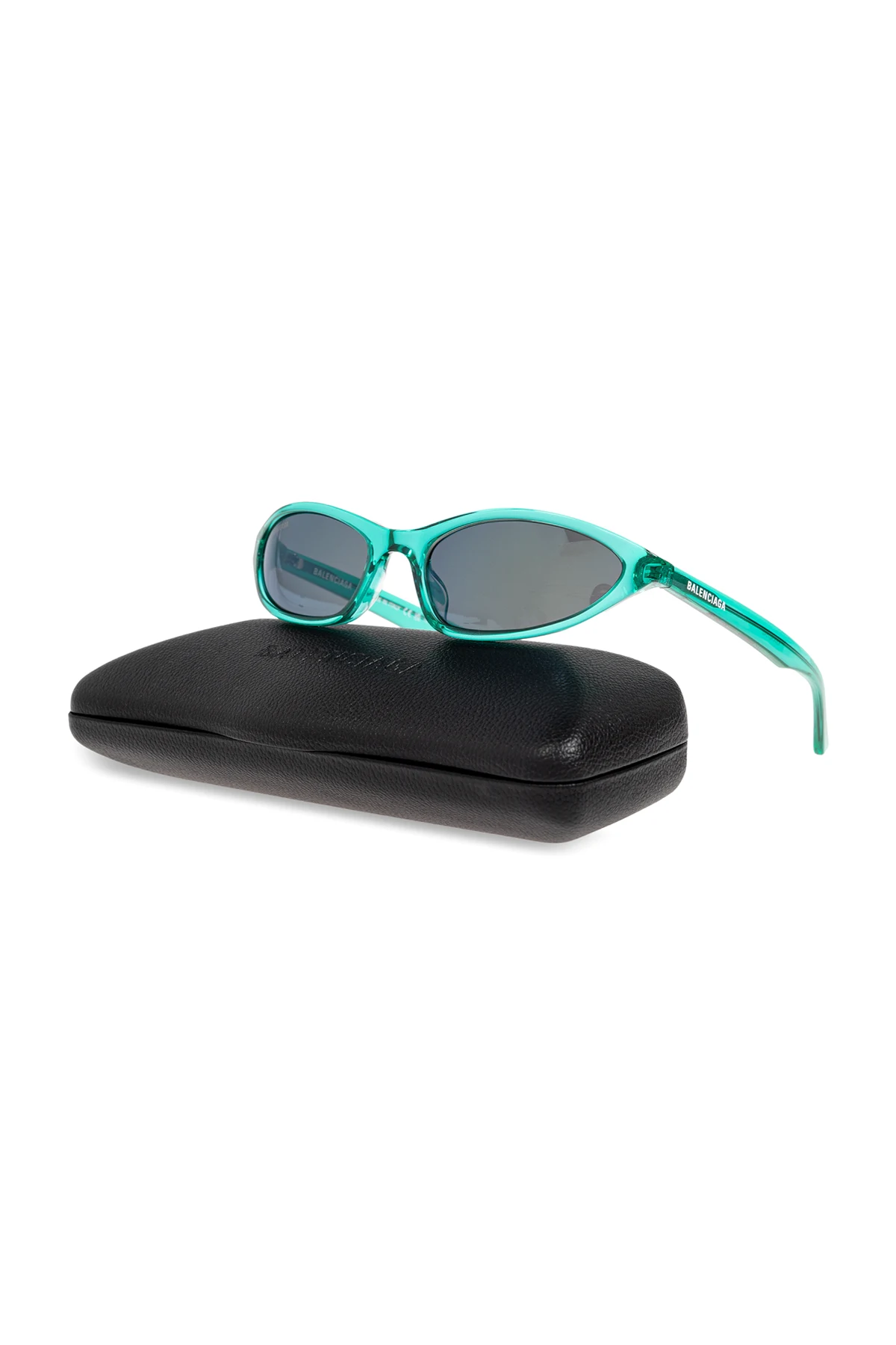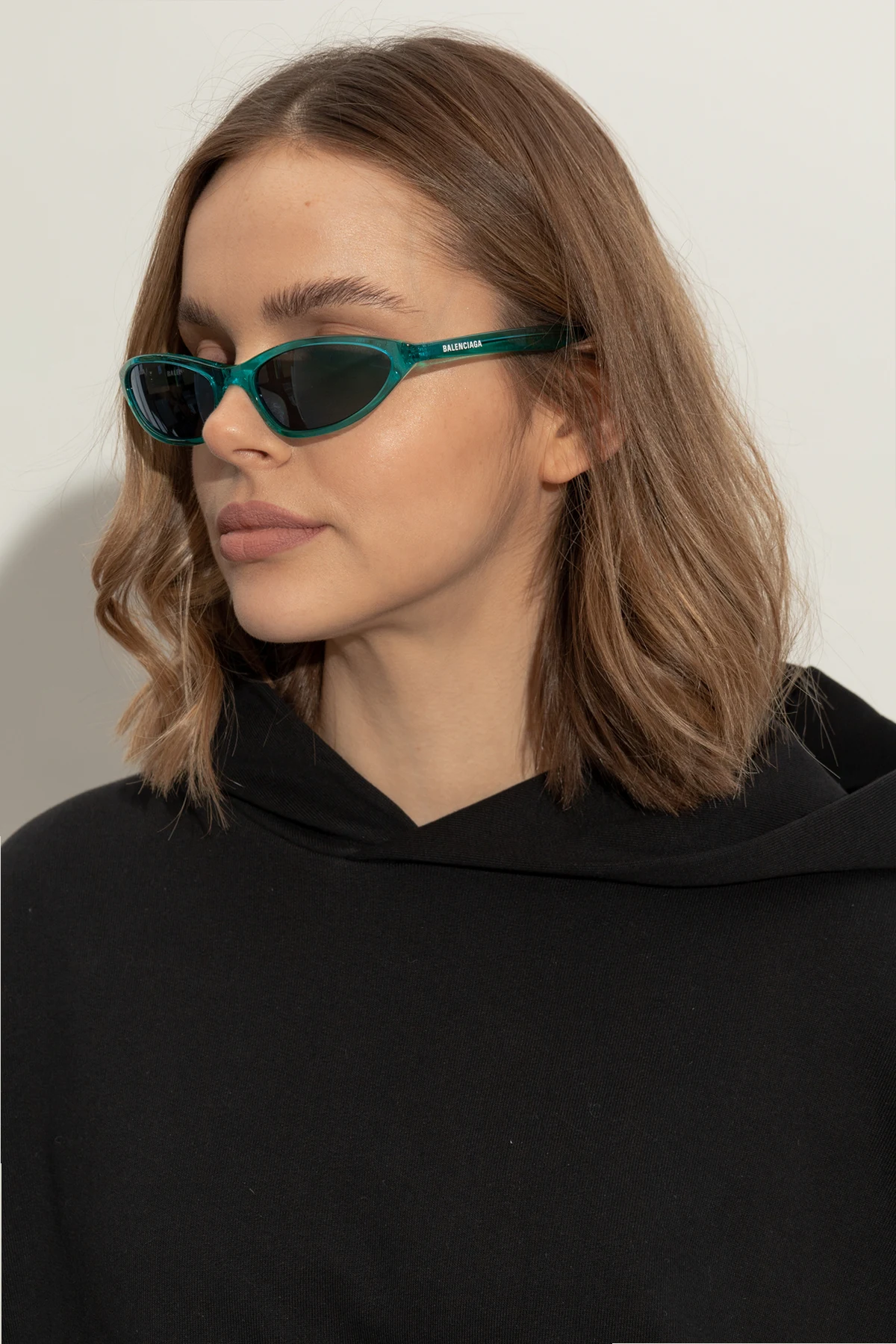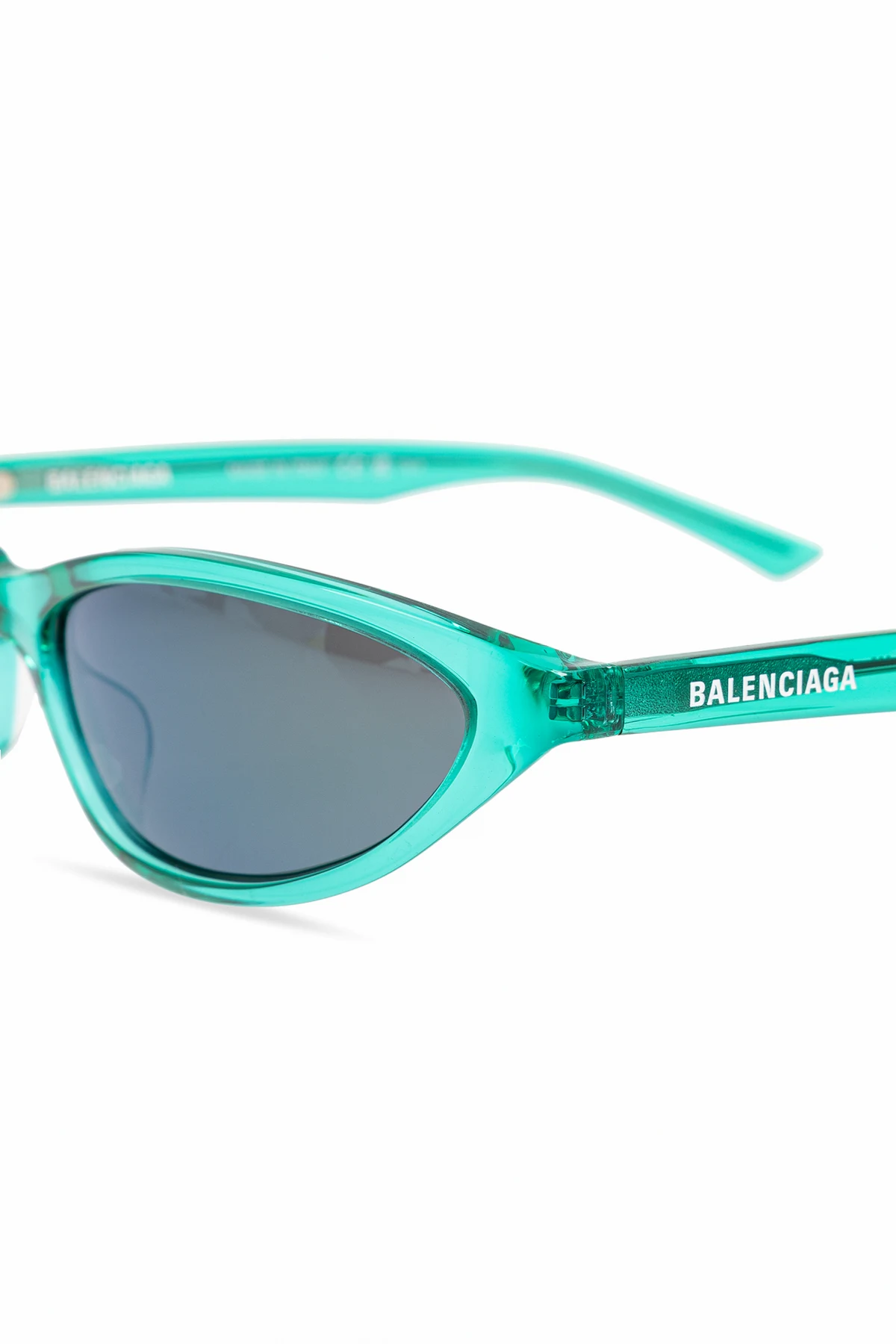 Prezentujemy okulary przeciwsłoneczne z ekskluzywnej kolekcji marki Balenciaga , będące kwintesencją nowoczesnej elegancji. Ich smukły kształt oraz oprawki typu "kocie oko" wykonane z przezroczystego, turkusowego acetatu, nadają im wyjątkową lekkość i stylowy wygląd. Okulary wyposażone są w ciemne soczewki , które oferują niezawodną ochronę przed promieniowaniem UV.