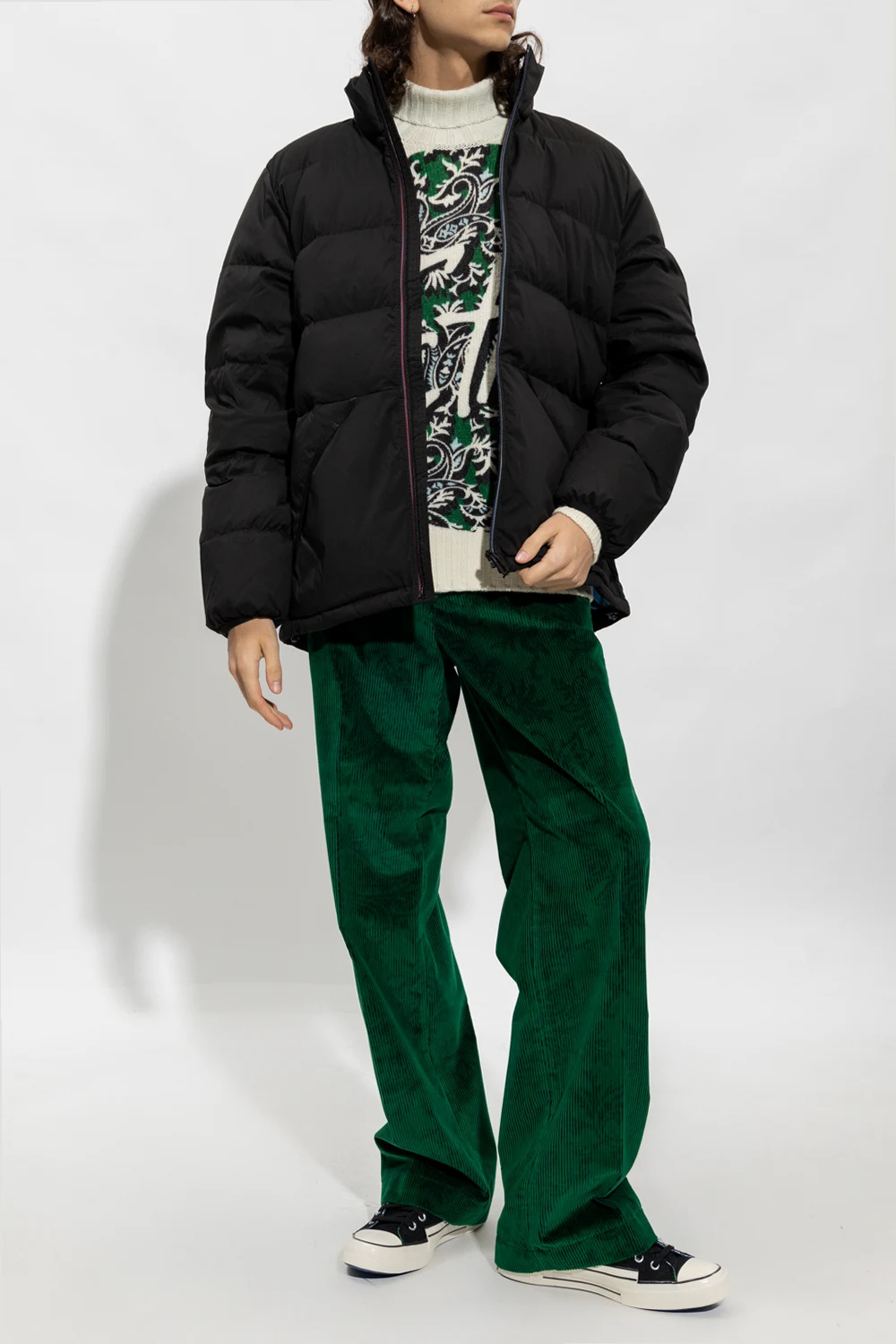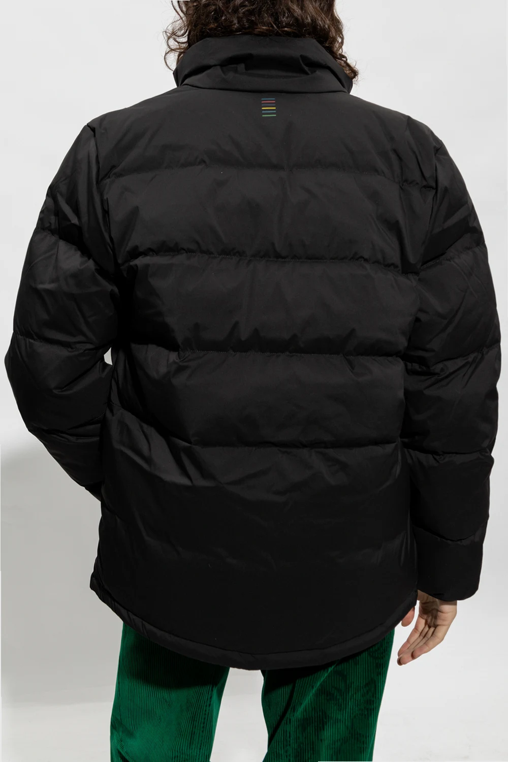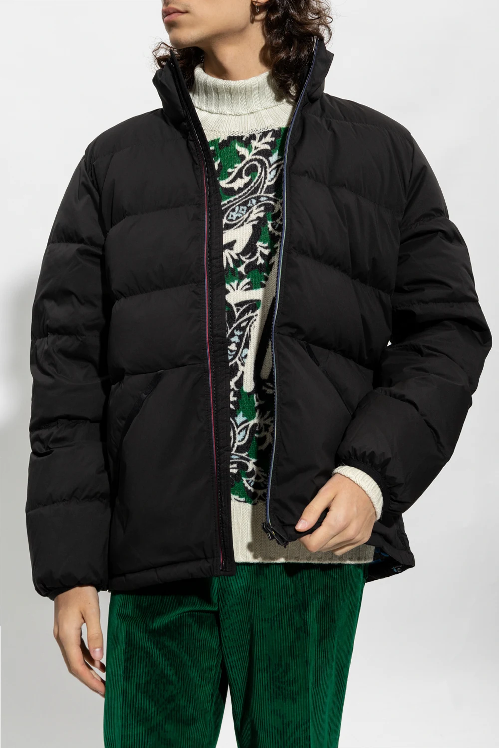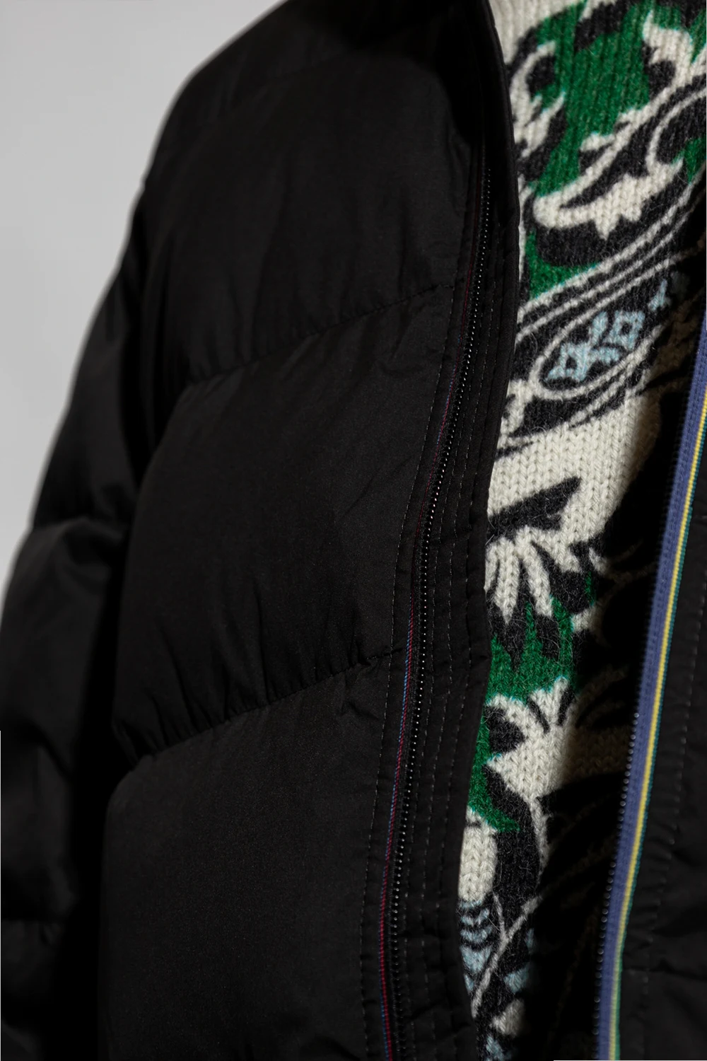 Czarna, pikowana kurtka ze stójką PS Paul Smith. Zapinana na zamek. Dół kurtki ściągany trokami. Kolorowe wykończenie. Z przodu dwie kieszeń. Długie rękawy.