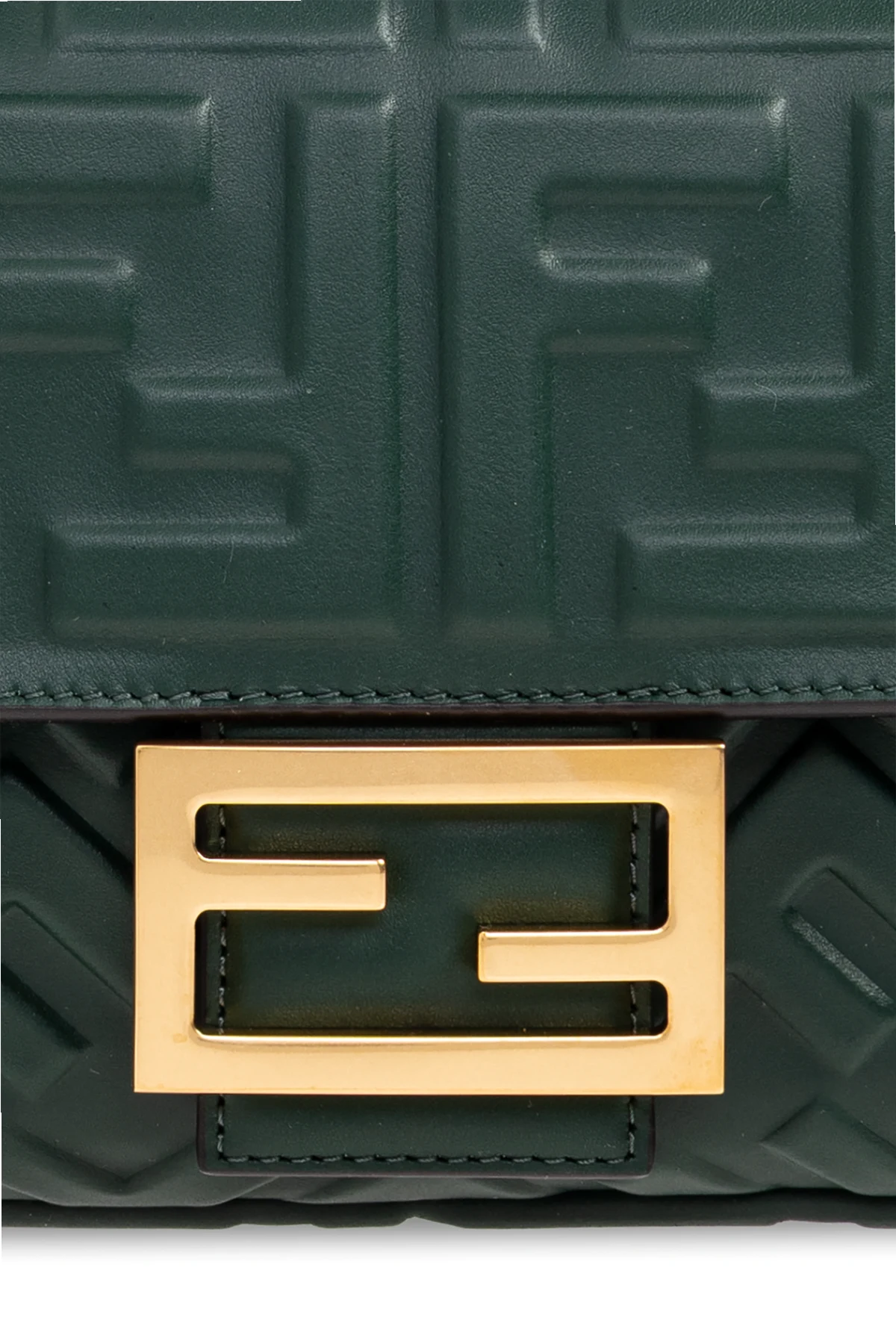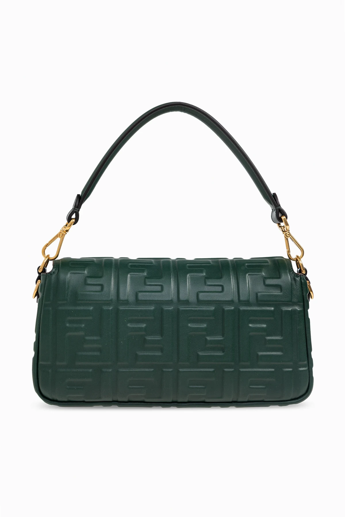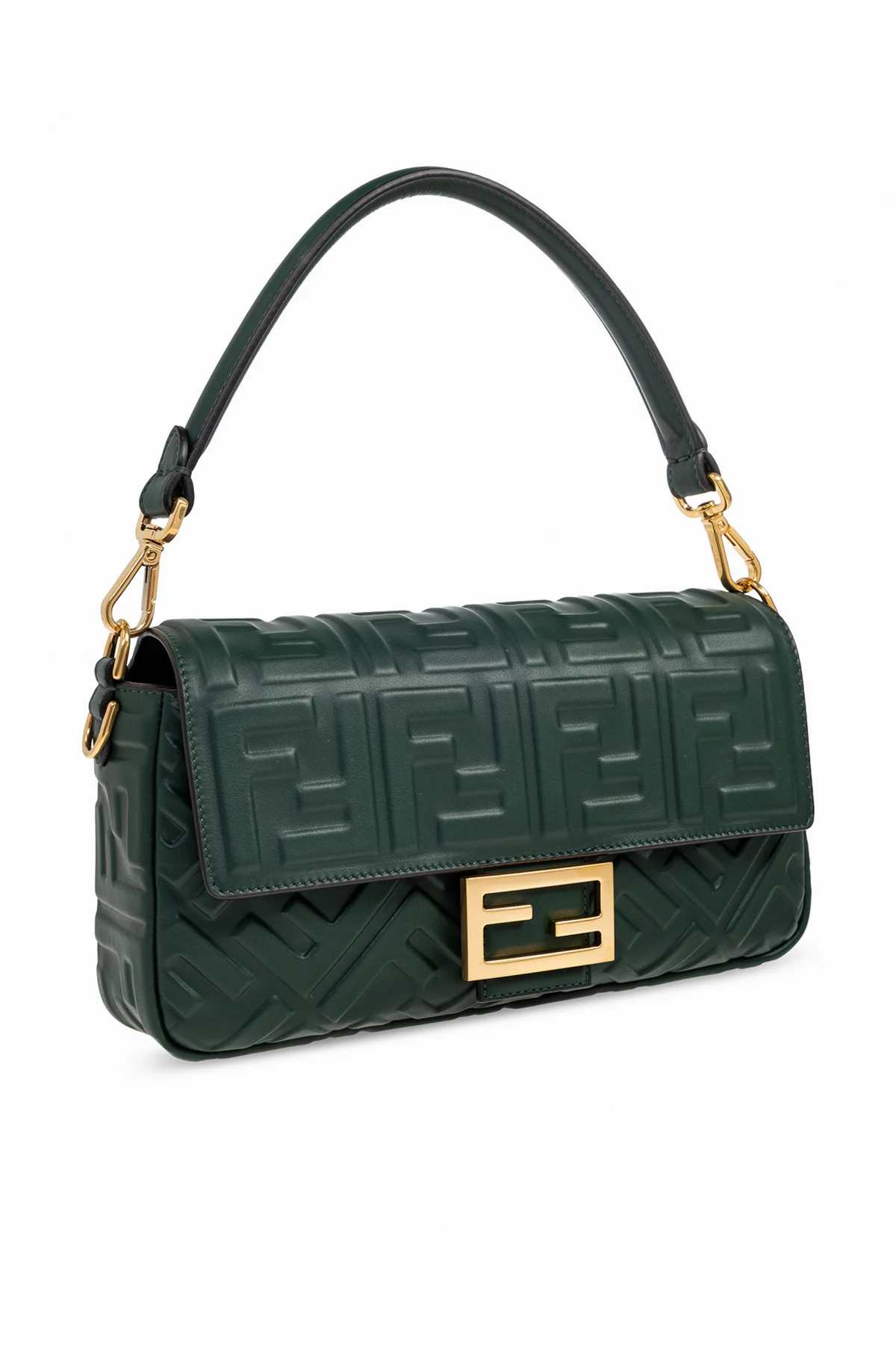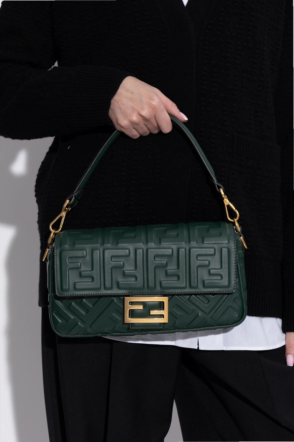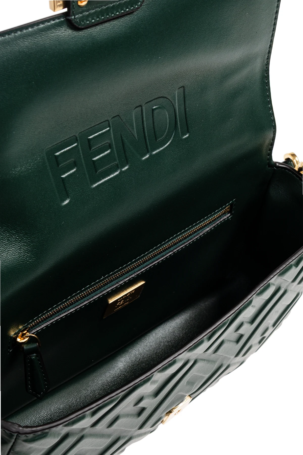 Torba na ramię Baguette marki Fendi to wyraz najwyższej elegancji we współczesnej odsłonie. Utrzymana w głębokim, zielonym kolorze, zachwyca klasyczną prostokątną formą oraz wyszukanymi detalami, które nadają jej niepowtarzalnego charakteru.