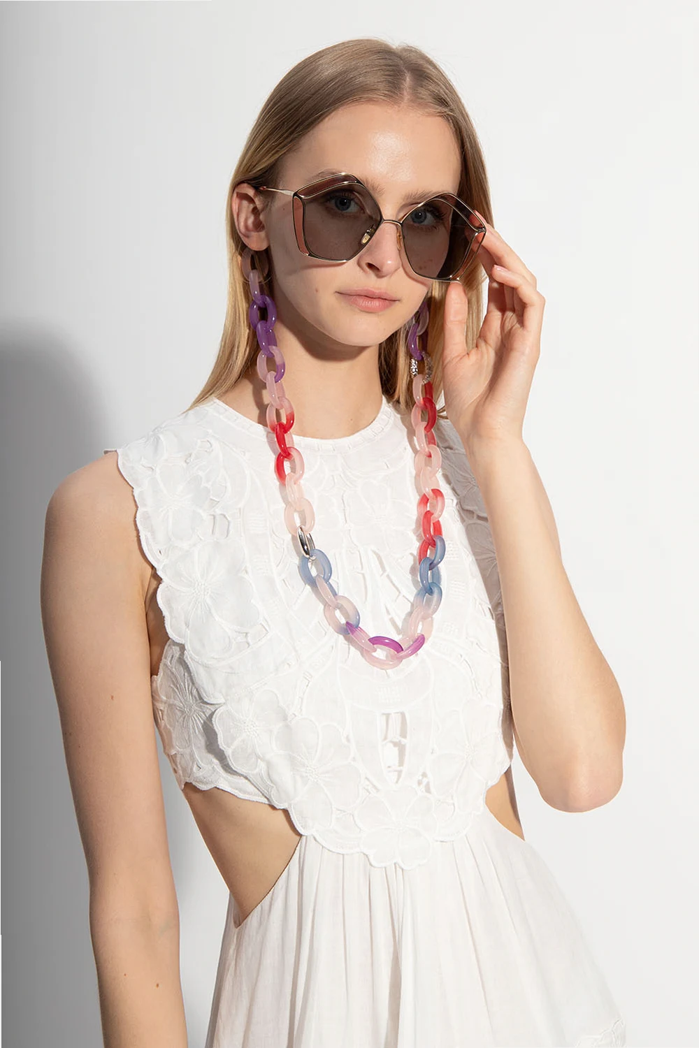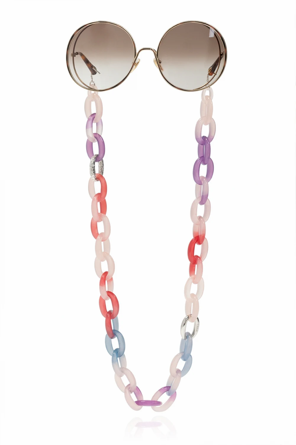 Kolorowy łańcuch do okularów Chloé. Ozdobiony metalowymi aplikacjami z logo w kolorze srebrnym.