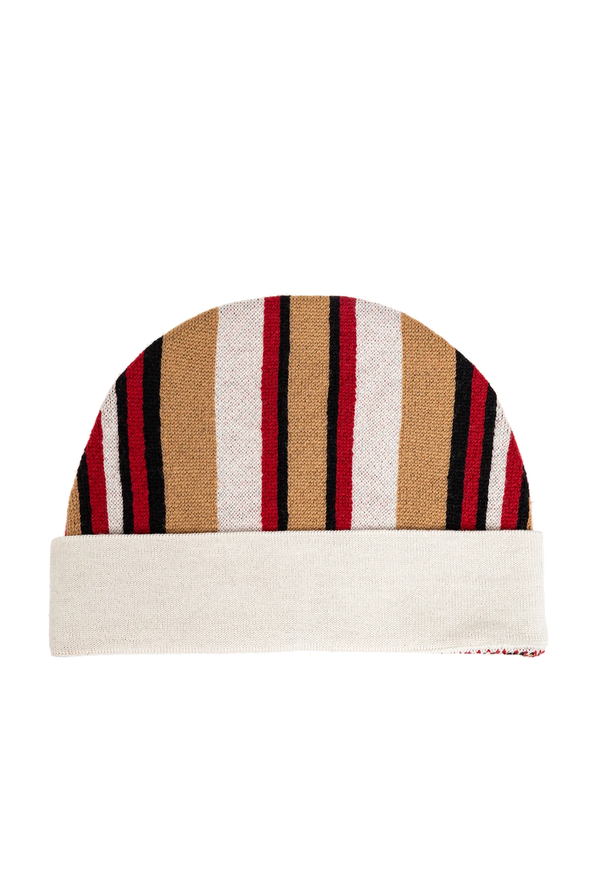 Przedstawiamy wełnianą czapkę z ekskluzywnej kolekcji marki Moschino , która zachwyca swoim klasycznym, zaokrąglonym kształtem oraz dynamicznym wzorem w pionowe paski. Połączenie kolorów beżowego, białego, czerwonego i czarnego nadaje jej niepowtarzalnego, modnego charakteru.