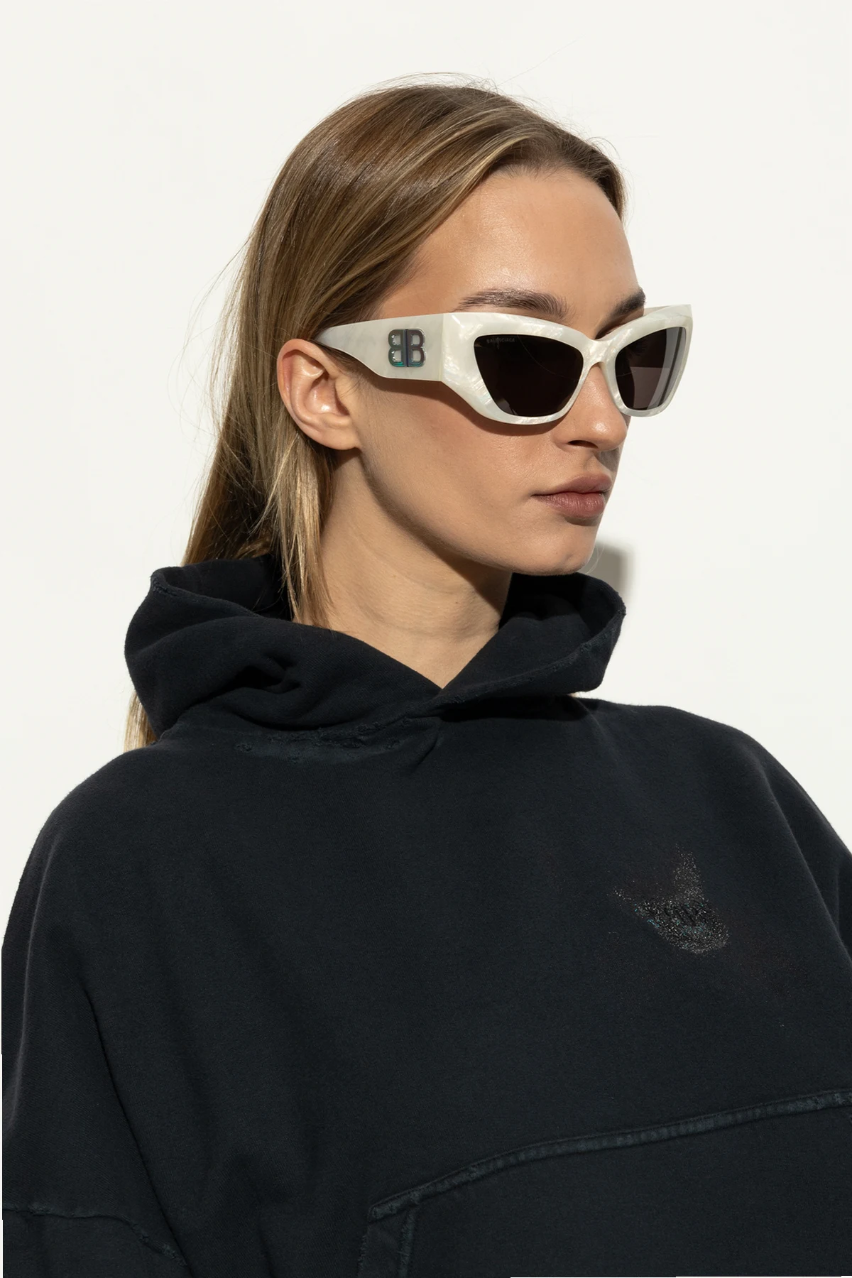 Prestiżowe logo Balenciaga na zausznikach.