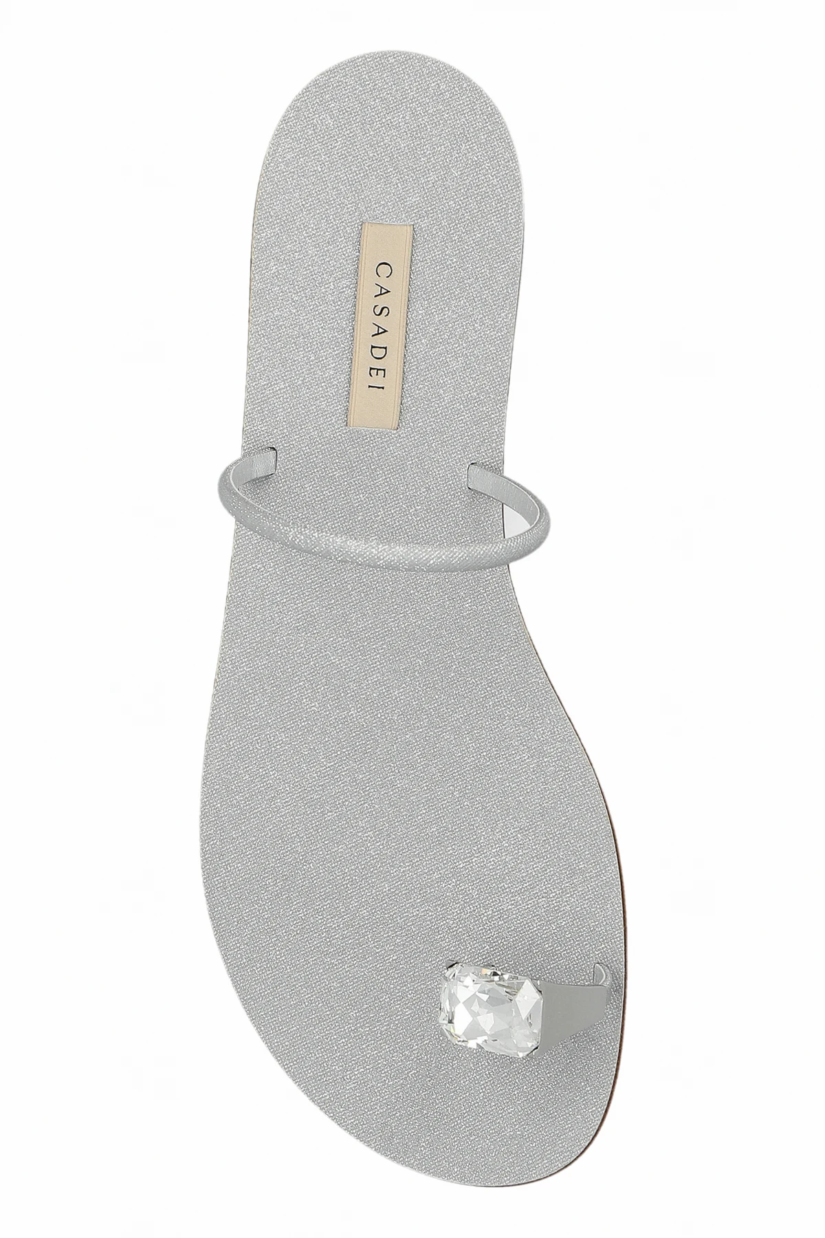 Odkryj niezrównaną elegancję klapek „Soraya Solar Eclipse” od renomowanej marki Casadei , której historia sięga 1958 roku. Te zachwycające srebrne klapki, wykonane z najwyższej jakości materiałów, łączą w sobie minimalistyczny design z luksusowymi detalami.