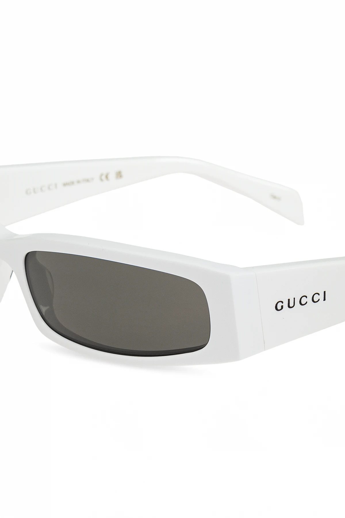 Okulary przeciwsłoneczne marki Gucci to synonim elegancji i nowoczesnego stylu. Te wyjątkowe okulary z ekskluzywnej kolekcji autorstwa dyrektor kreatywny, nowego dyrektora kreatywnego, wyróżniają się prostokątnym kształtem i szerokimi, białymi oprawkami wykonanymi z najlepszej jakości acetatu.