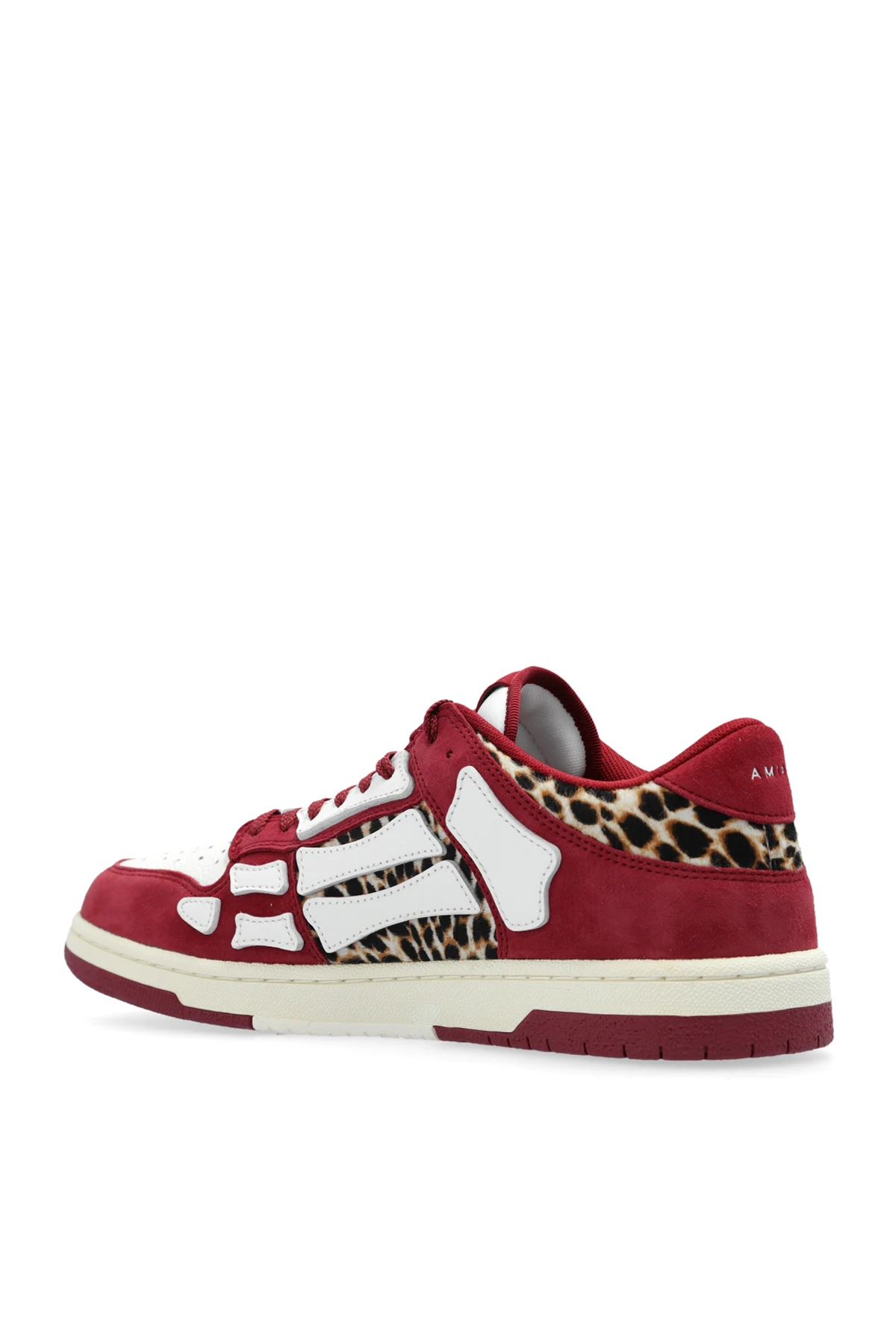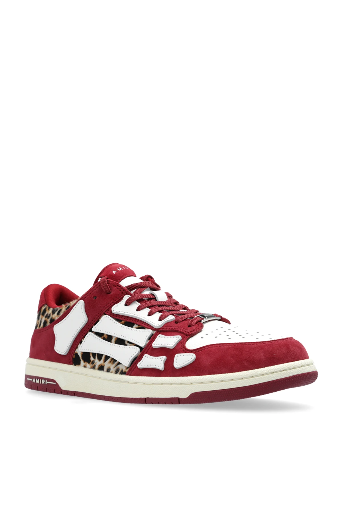 Prezentujemy buty sportowe "Leopard Skel Top" od luksusowej marki Amiri, które łączą w sobie nowoczesny design z wyrazistymi, charakterystycznymi elementami. Te niskoprofilowe sneakersy w stylu low-top wyróżniają się dominującym czerwonym kolorem oraz unikalnym wzorem leopard print na pięcie i bocznych panelach.