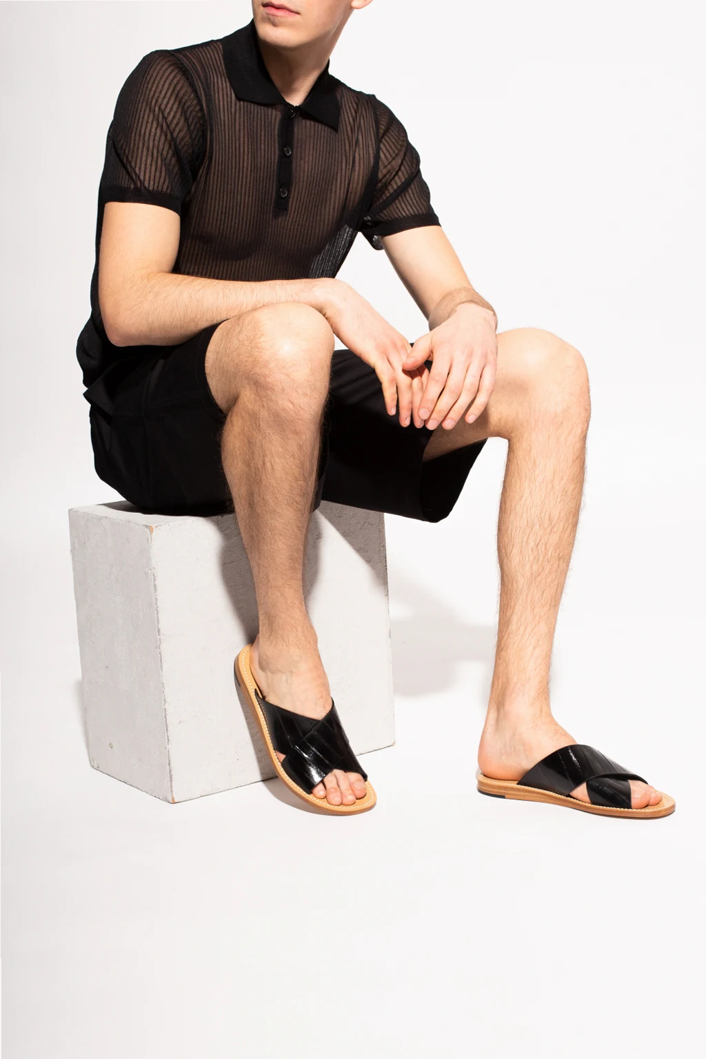 – Czarne wsuwane sandały