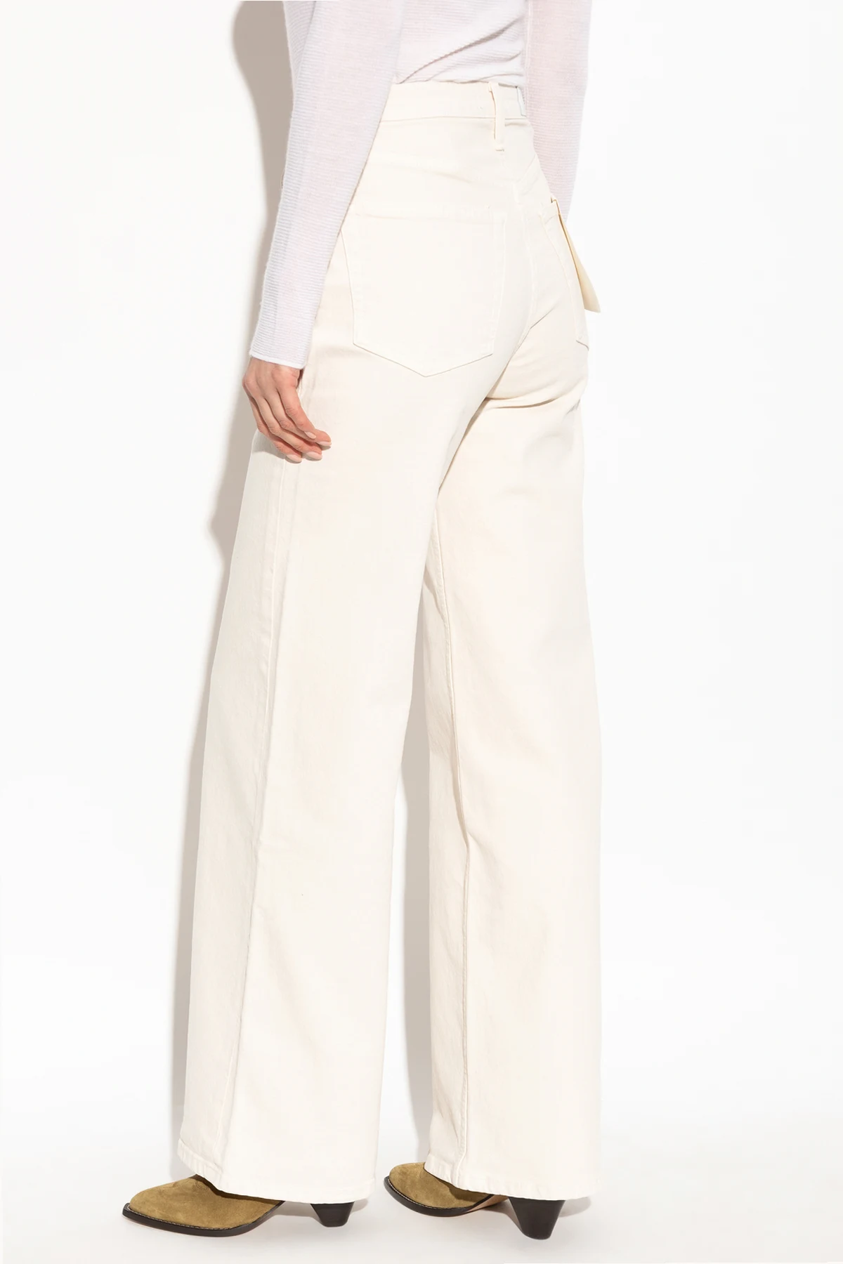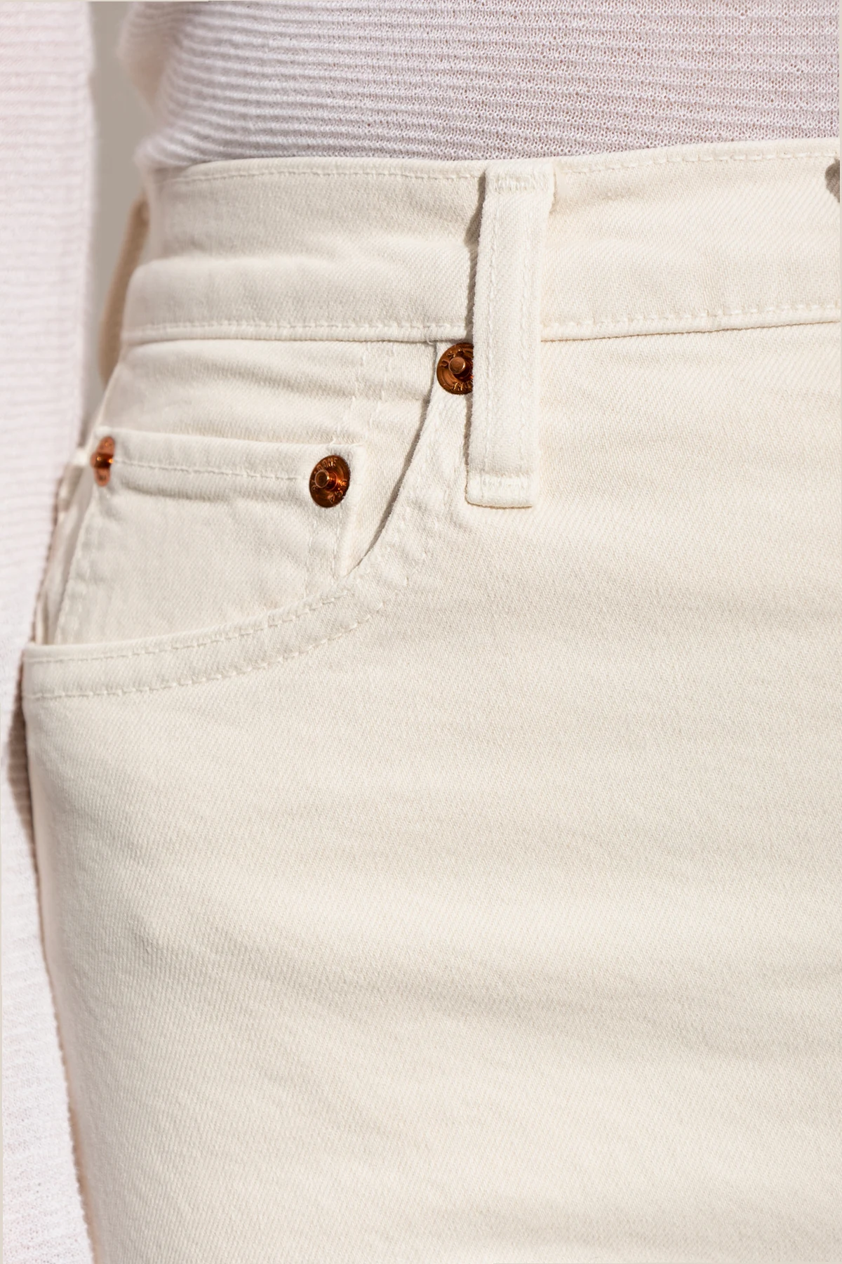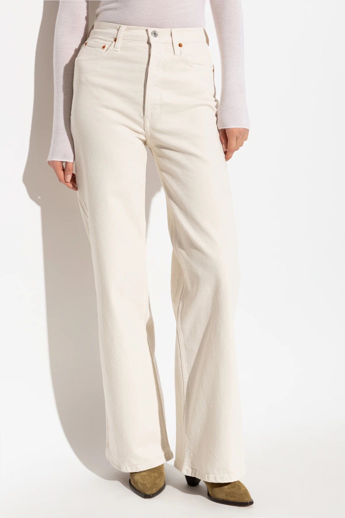 Jeansy z nogawkami o prostym kroju marki RE/DONE to esencja ponadczasowej elegancji, zaprezentowana w subtelnym odcieniu kremu. Starannie wyselekcjonowany denim typu stretch zapewnia delikatną elastyczność, harmonijnie łącząc komfort noszenia z doskonałym, klasycznym wyglądem. Wysoki stan efektownie akcentuje talię, a prosty krój nogawek – szeroki od bioder po końcówkę – gwarantuje wysublimowaną linię sylwetki.