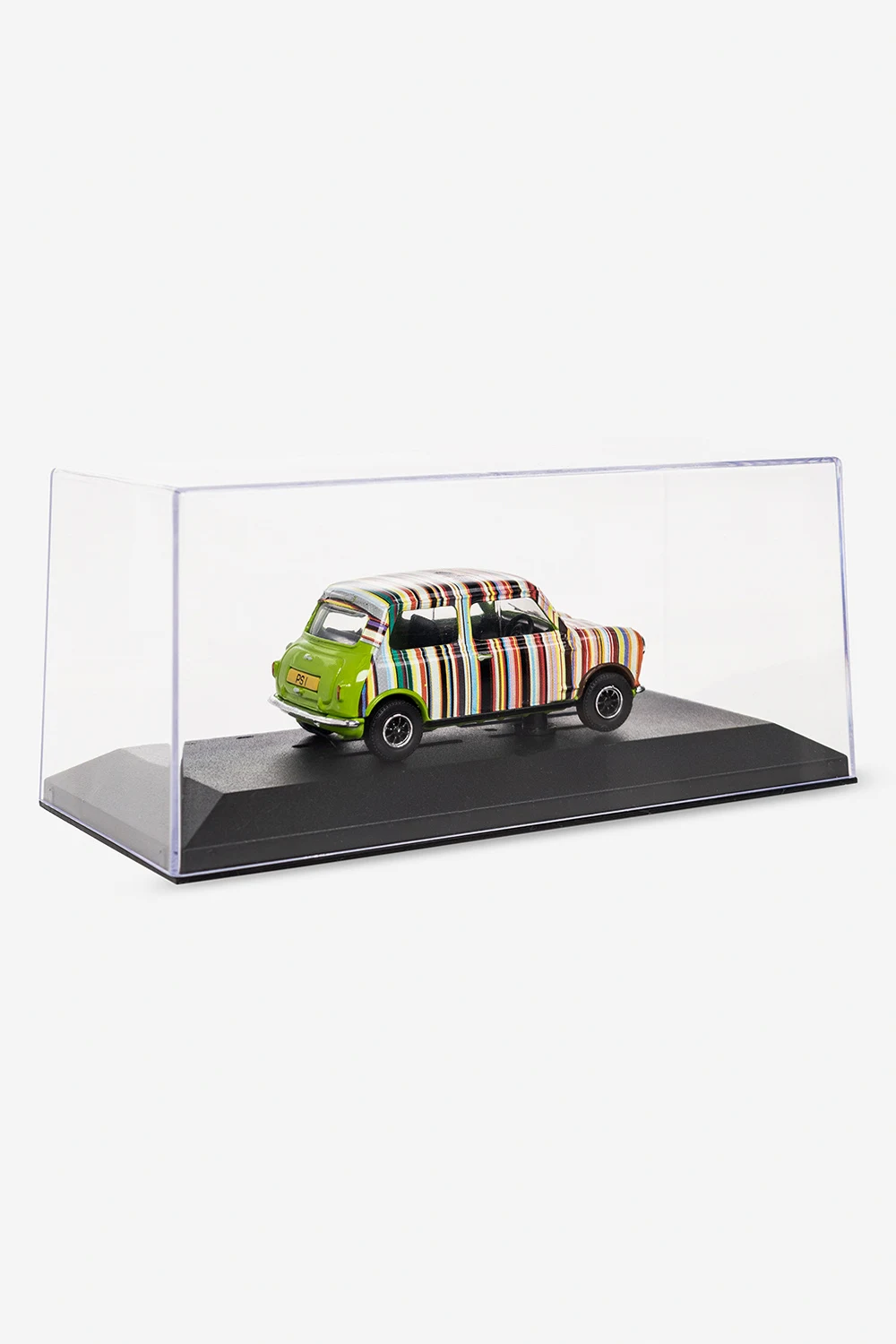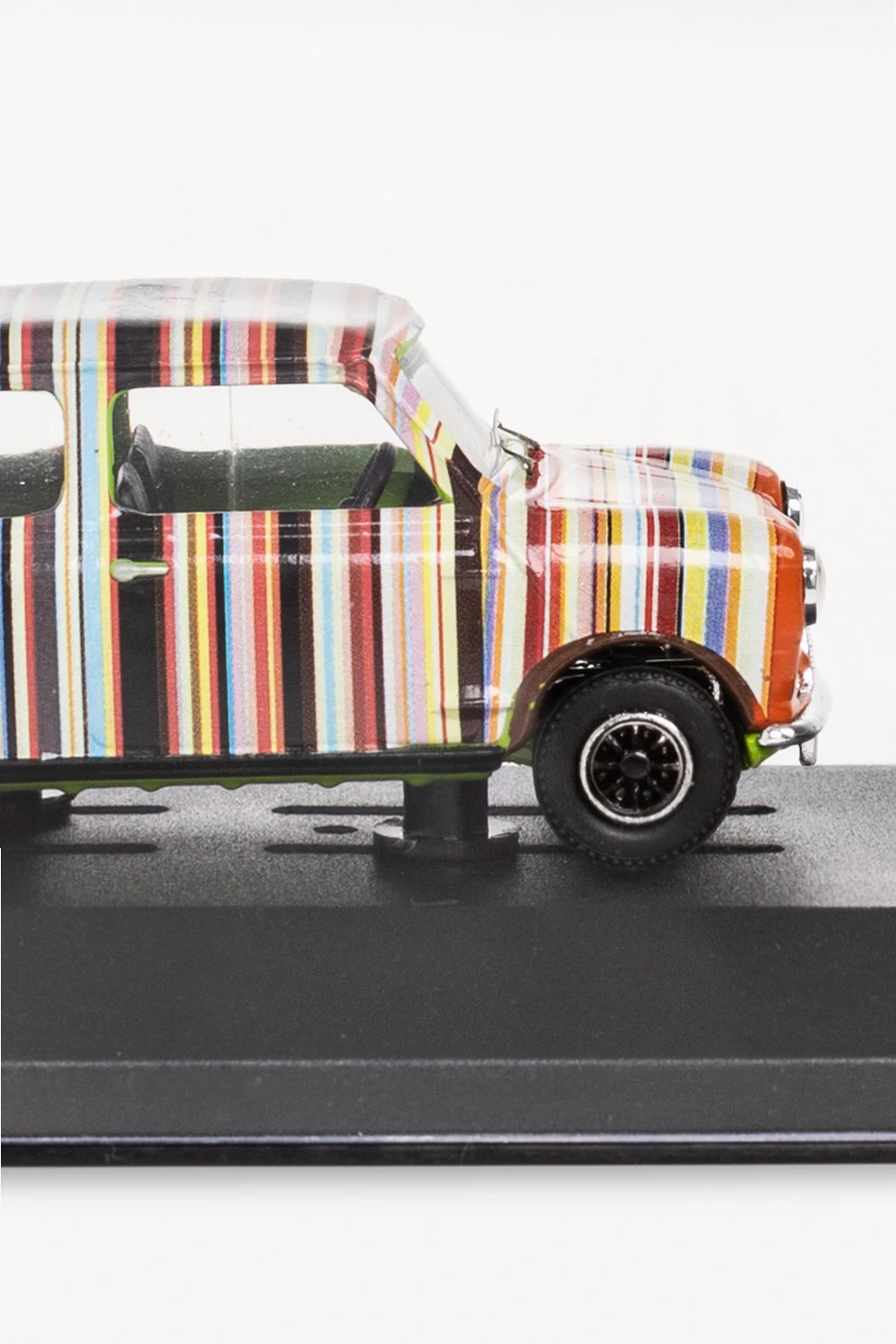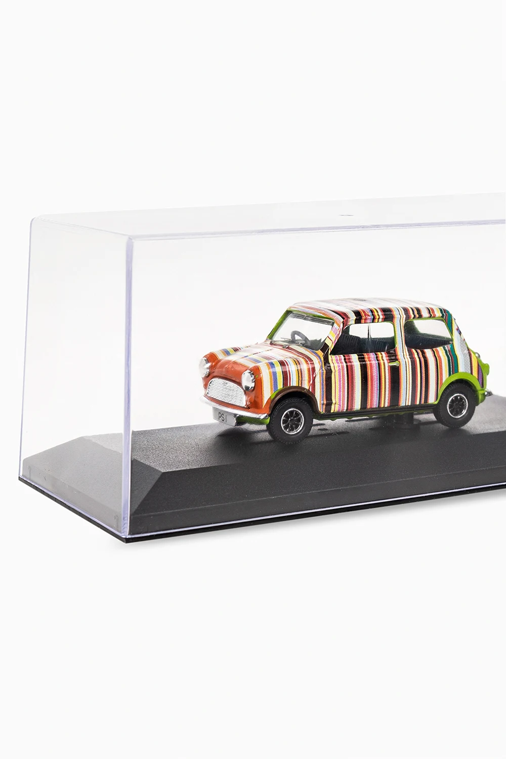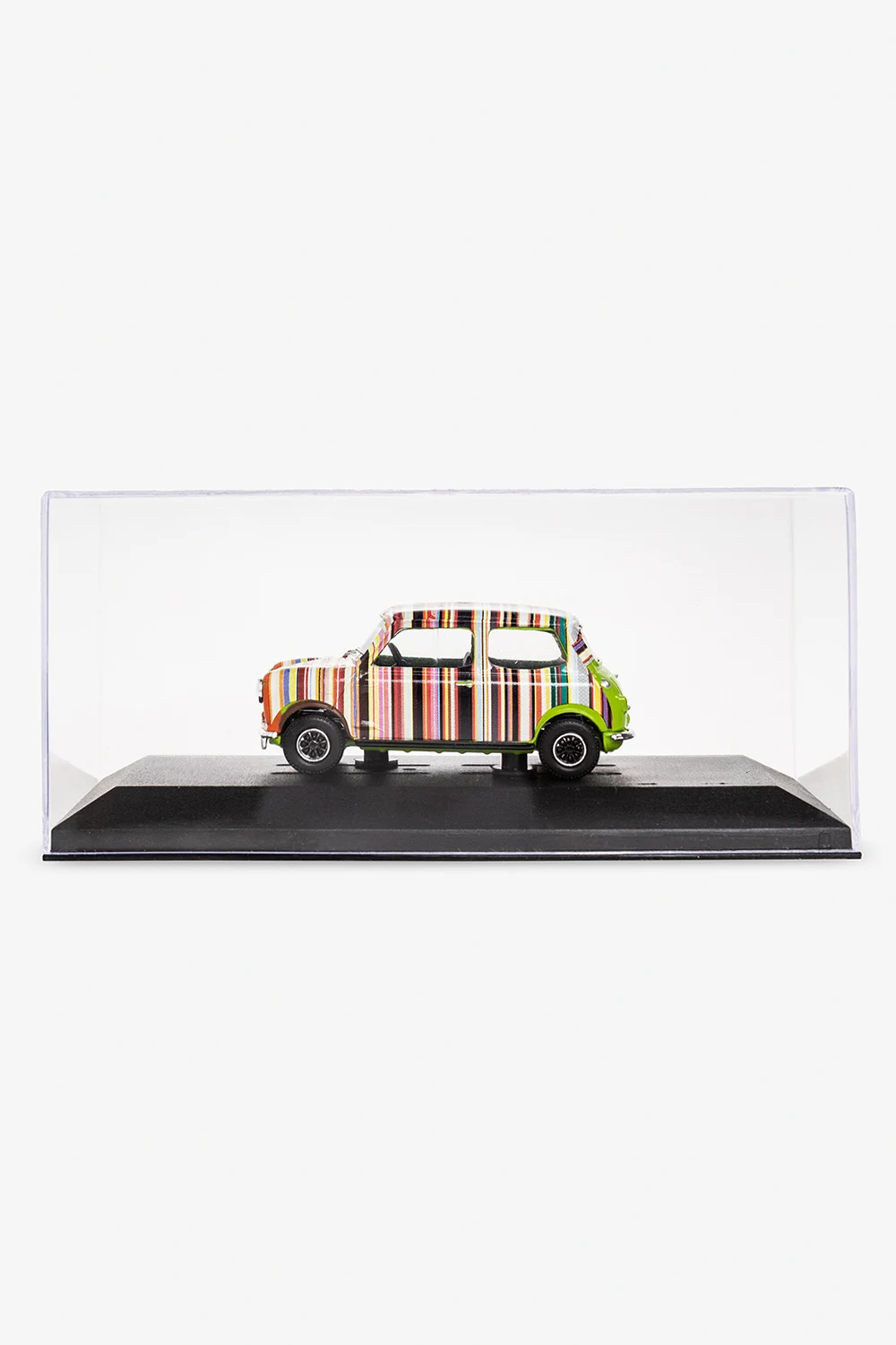 Kolorowy odlewany ciśnieniowo model samochodu Paul Smith. Ozdobiony wzorem w charakterystyczne paski i nadrukowanym logo.