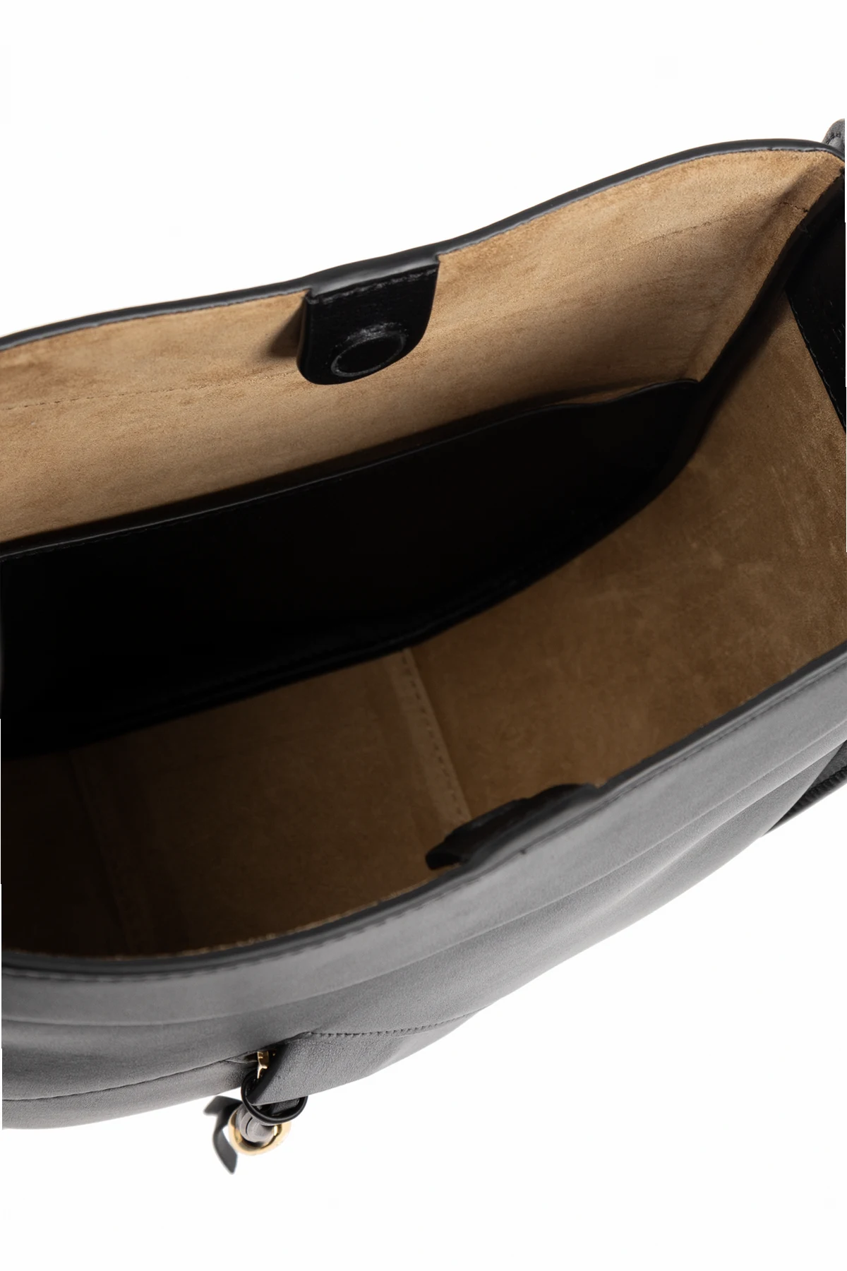Wnętrze torby, wykończone materiałem w jasnym odcieniu, kryje magnetyczne zamknięcie, przestronną komorę oraz wsuwaną kieszeń, co zapewnia wygodę użytkowania.