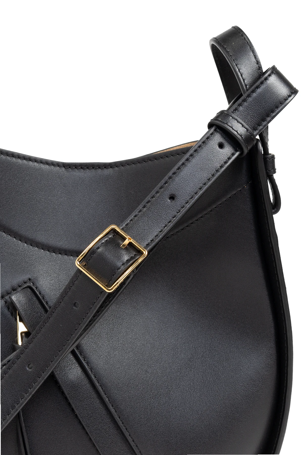 Wykonana z najwyższej jakości skóry, torba zachwyca czarnym kolorem , który podkreśla jej uniwersalny charakter. Wyposażona w regulowany pasek z metalową sprzączką w złotym kolorze, zaspokoi najbardziej wyrafinowane gusta.