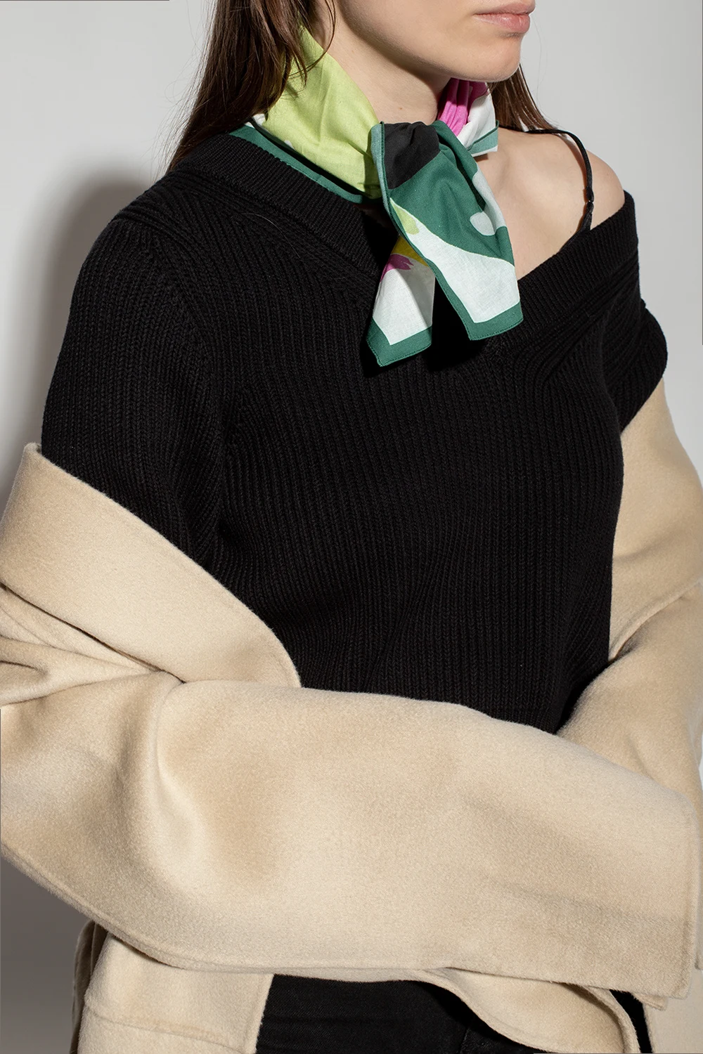 Kolorowa chusta Kenzo. Wykonana z bawełny. Ozdobiona wzorem z motywem logo.