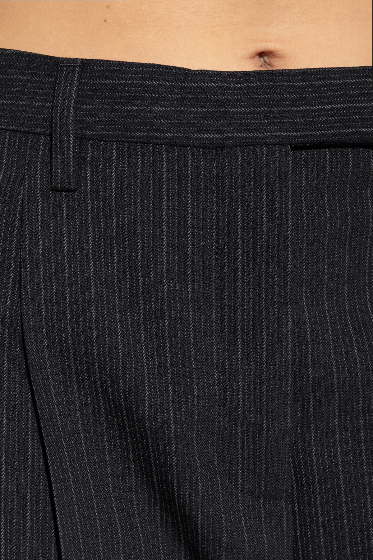 Przedstawiamy Spodnie w kant w prążek od renomowanej marki Acne Studios, które łączą w sobie elegancję i ponadczasowy styl. Wykonane z doskonałej jakości tkaniny, składającej się z wełny, bawełny i elastanu, spodnie te są esencją wyrafinowanego minimalizmu.