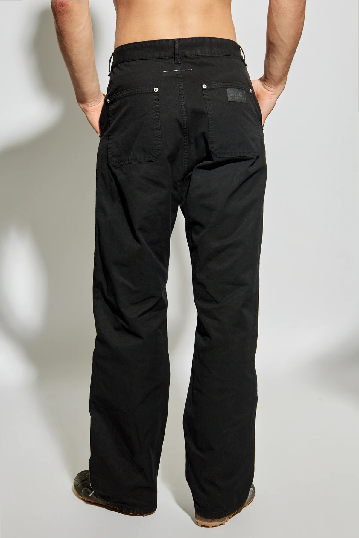 Spodnie z prostymi nogawkami autorstwa MM6 Maison Margiela to kwintesencja wyważonej elegancji i nowoczesnego podejścia do mody codziennej. Czarne, gładkie spodnie o matowej fakturze zostały wykonane z wysokogatunkowej bawełny, zapewniającej trwałość oraz wyjątkowy komfort noszenia.