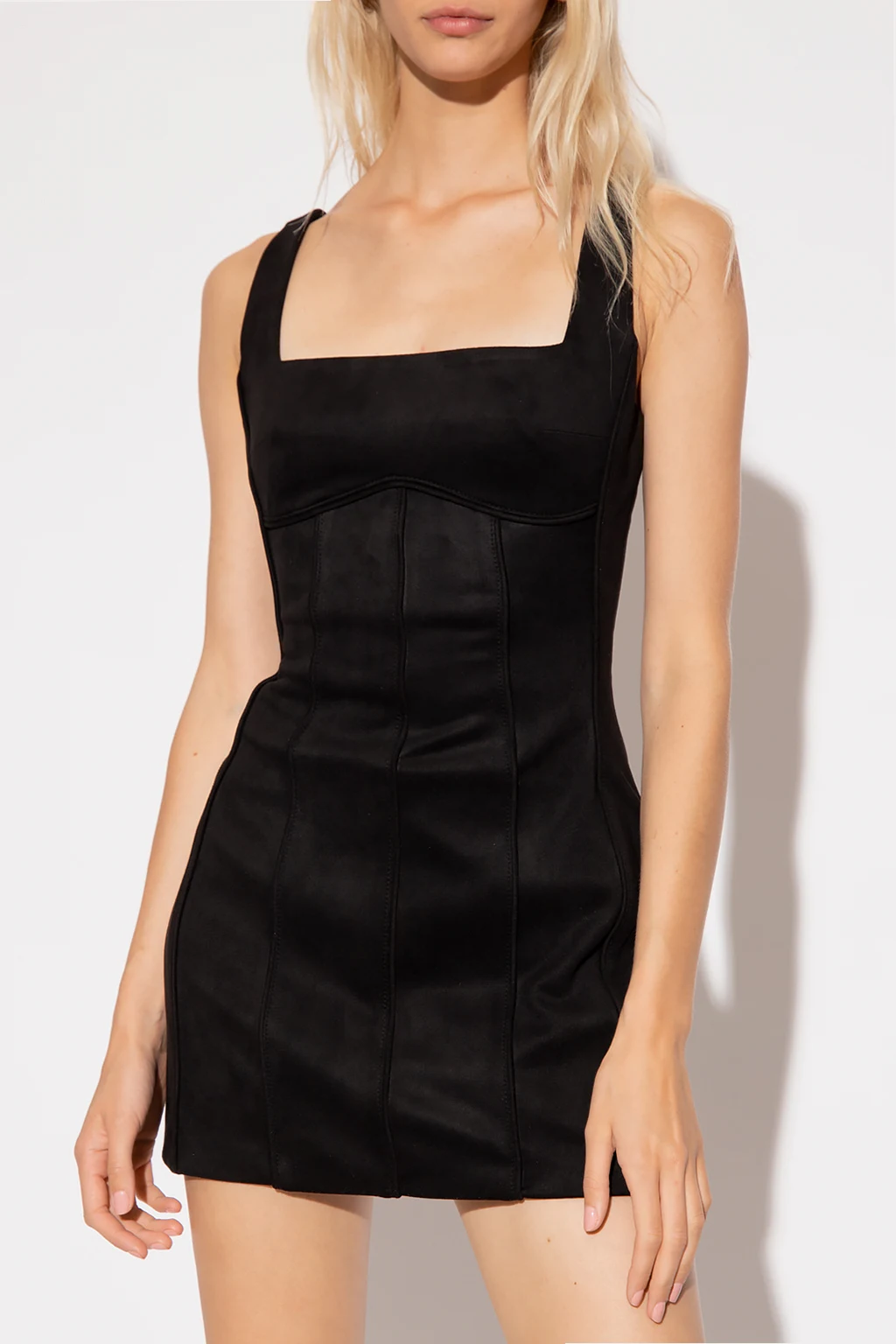 Czarna sukienka, model ‘Vegan’ MISBHV, kolekcja ‘1978-1982’. Z tyłu zapinana na zamek. Dekoracyjne przeszycia.