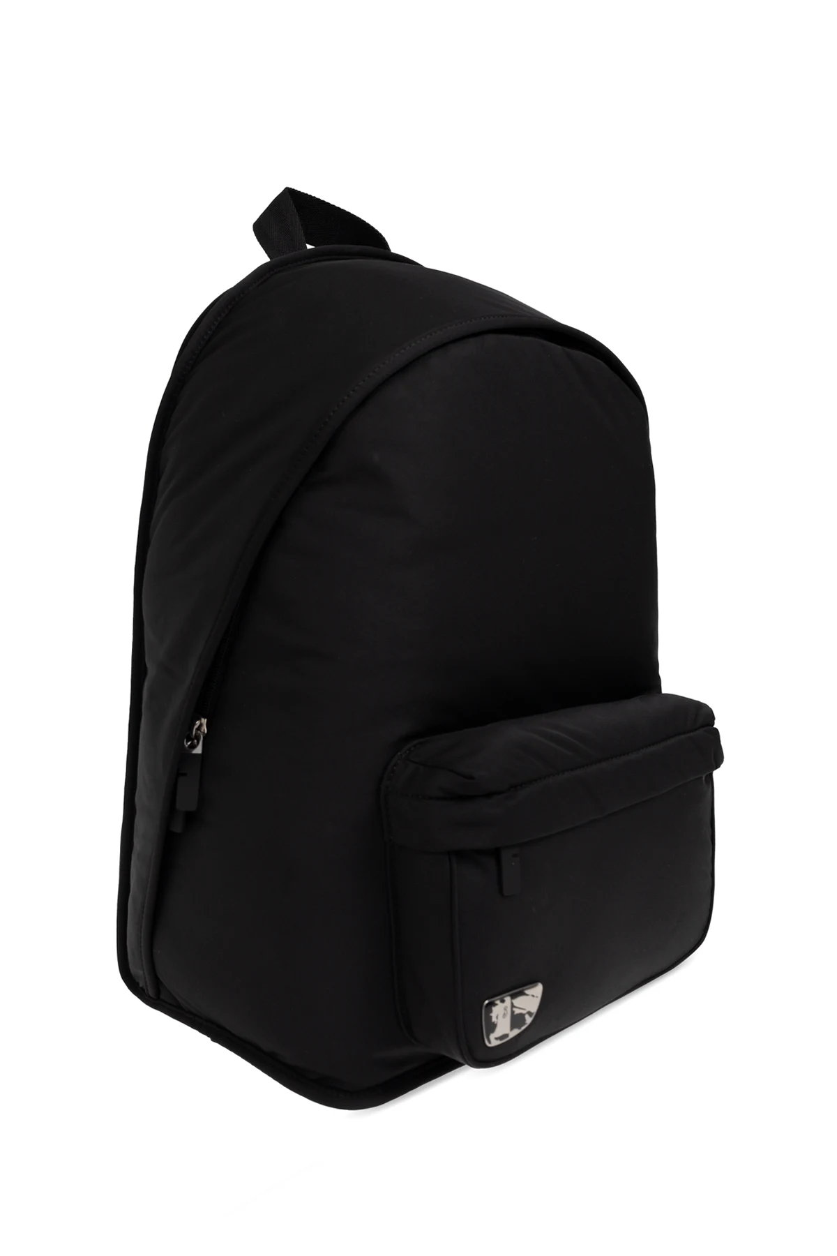 Charakteryzuje się klasyczną, zaokrągloną formą z dobrze zdefiniowaną strukturą. Metalowe logo Burberry subtelnie zdobi przednią część, a wnętrze kryje kraciastą podszewkę, będącą ukłonem w stronę tradycji marki. Praktyczność zapewniają regulowane szelki oraz górny uchwyt , umożliwiający noszenie w ręce.