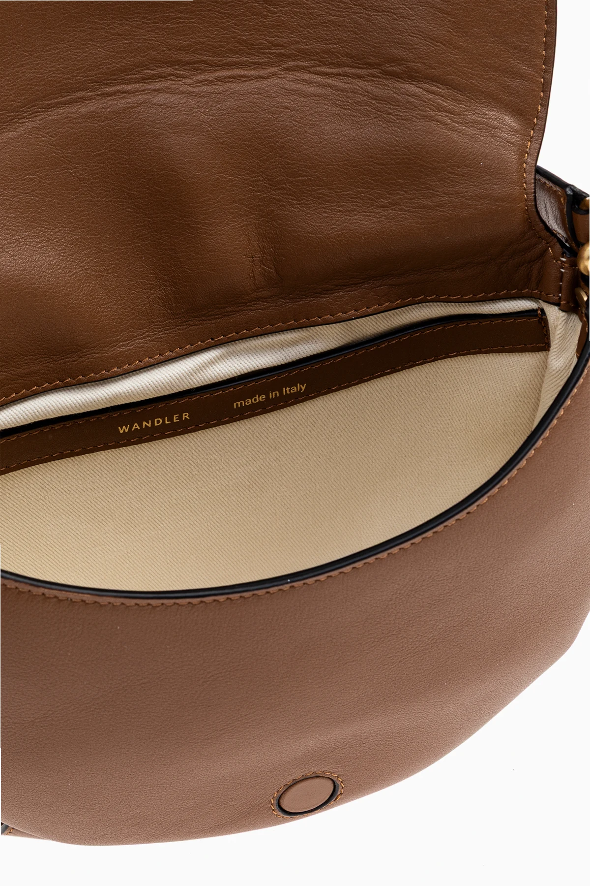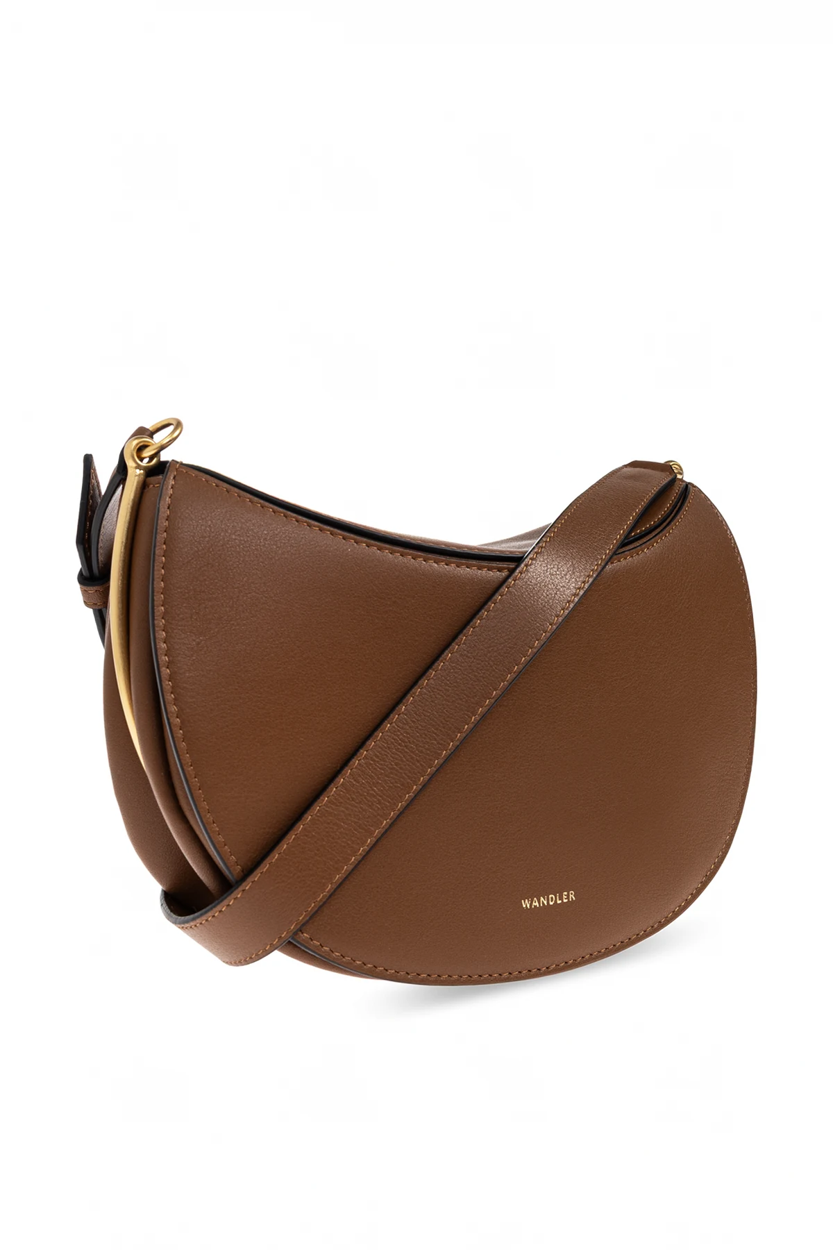 Torba na ramię „Kate” od marki Wandler to kwintesencja wyrafinowanej estetyki oraz ponadczasowej elegancji. Jej miękka, półokrągła sylwetka inspirowana klasycznym kształtem „saddle bag” subtelnie nawiązuje do tradycyjnych wzorców, lecz pozostaje wierna nowoczesnemu minimalizmowi. Gładka faktura skóry cielęcej w ciepłym, jednolitym odcieniu brązu oraz ascetyczny brak zdobień podkreślają luksusowe wykonanie tej kreacji.