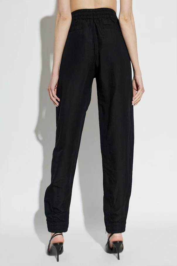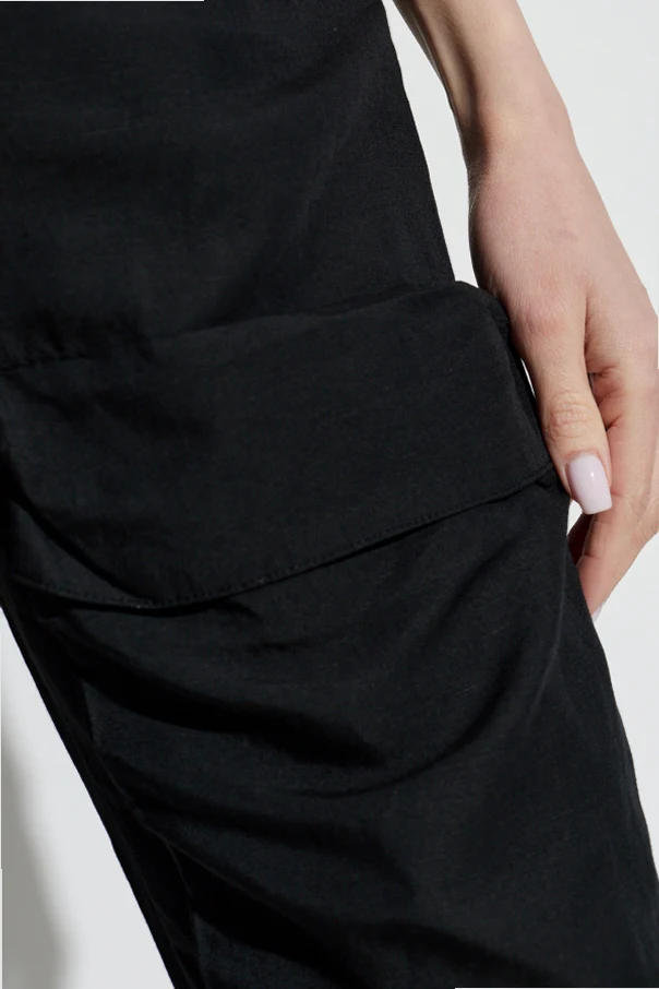Wyjątkowa, matowa tkanina – szlachetna mieszanka modalu, wiskozy oraz lnu – zapewnia nie tylko szlachetną strukturę, ale również niezrównany komfort noszenia. Gładka, jednolita powierzchnia w kolorze czarnym podkreśla luksusowy wymiar modelu, a przemyślane, naszywane kieszenie w stylu cargo i szlachetne przeszycia dodają całości funkcjonalności i głębi. Szerokie mankiety u dołu nóg uwydatniają współczesny, sportowo-elegancki charakter.