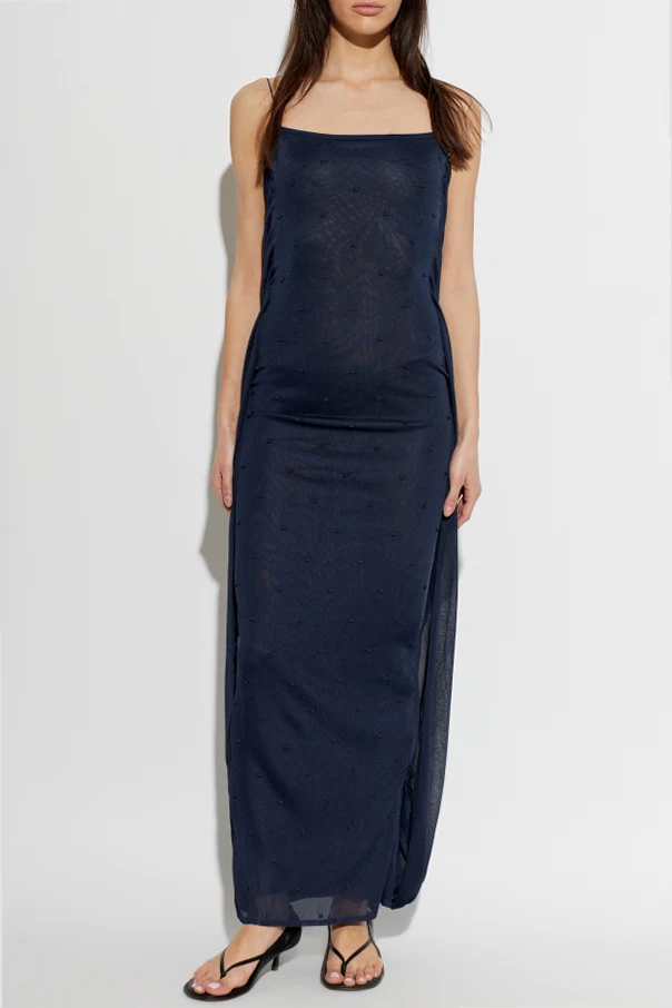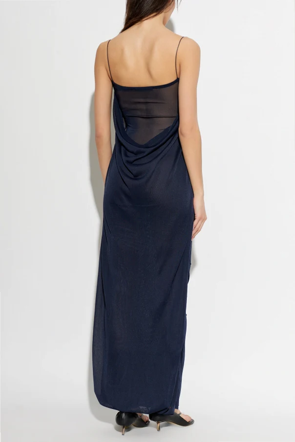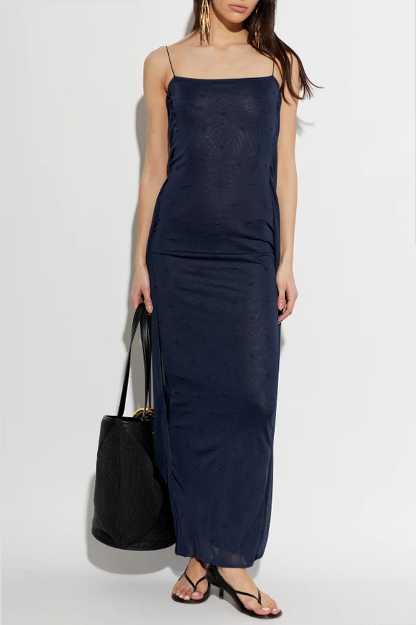 Sukienka Plumetis marki Jacquemus to synonim wyrafinowanego minimalizmu i nieprzemijającej elegancji. Jej dopasowany, prosty fason typu maxi subtelnie podkreśla sylwetkę, zaś bardzo cienkie ramiączka typu spaghetti oraz lekko opuszczony, drapowany tył nadają sylwetce lekkości oraz zmysłowego wdzięku.