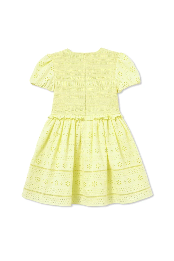 Sukienka z ażurowym wykończeniem zachwyca subtelną elegancją i wyjątkowym podejściem do detali charakterystycznym dla marki Self-Portrait Kids. Model o klasycznym kroju urzeka rozkloszowaną, marszczoną spódnicą oraz dopasowaną górą, ozdobioną wyszukanym smockingiem, który nadaje lekkości oraz zapewnia wygodne dopasowanie.