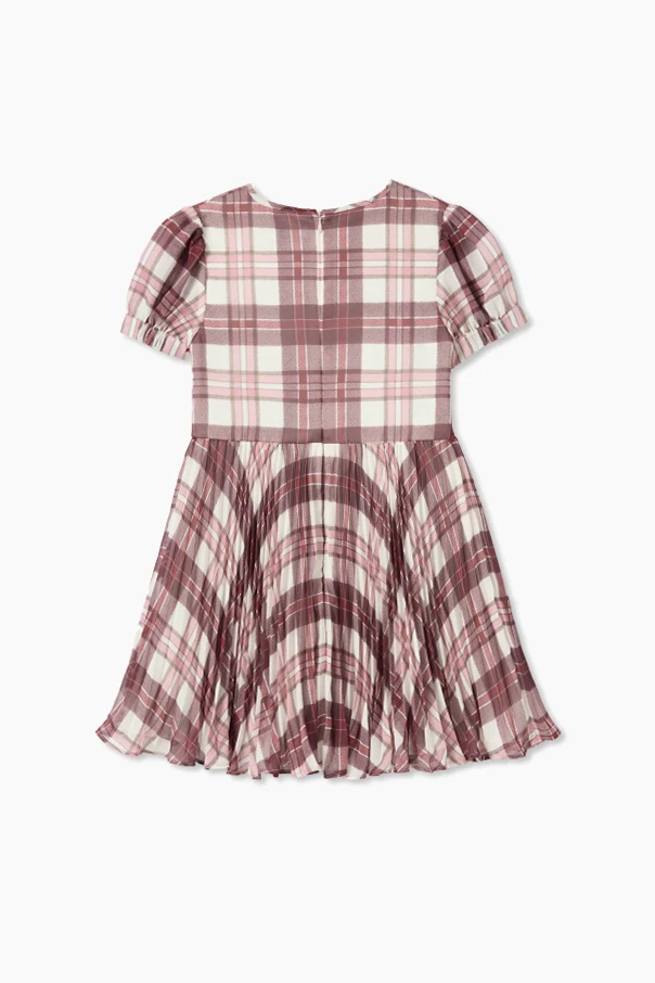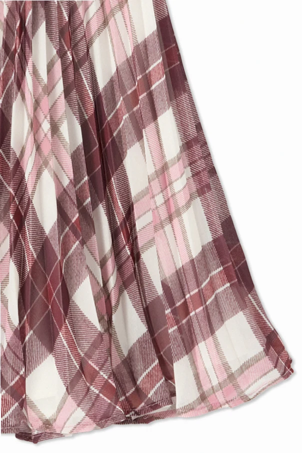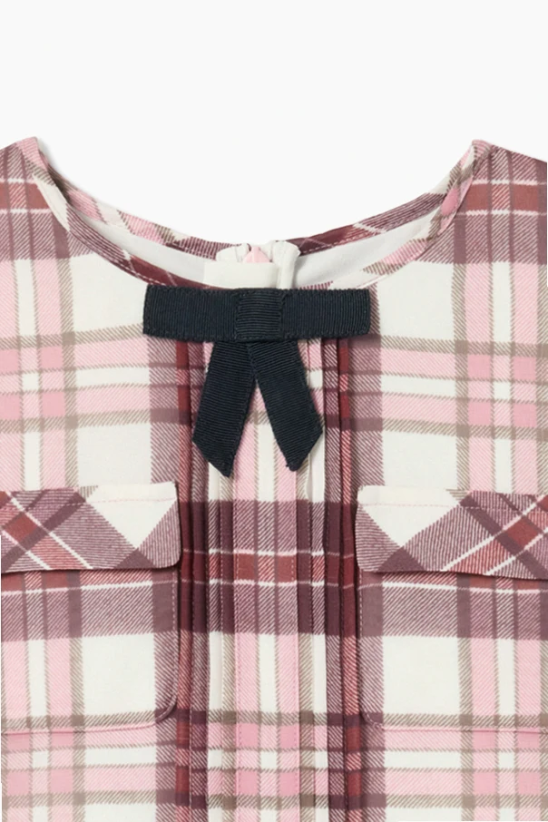 Sukienka ze wzorem w kratkę zachwyca wysublimowaną harmonią klasyki i dziecięcej świeżości. Projekt stworzony przez Self-Portrait Kids urzeka starannością wykończenia, opierając się na subtelnym, miękkim materiale o delikatnie strukturalnej fakturze, który otula skórę niczym jedwabisty dotyk. Efektowny, symetryczny wzór w kratkę wpisuje się w dominujące odcienie bordo, różu oraz bieli, a różnorodność wielkości kratek – większych na spódnicy i mniejszych na górze oraz kieszeniach – podkreśla niebanalny charakter tego fasonu.