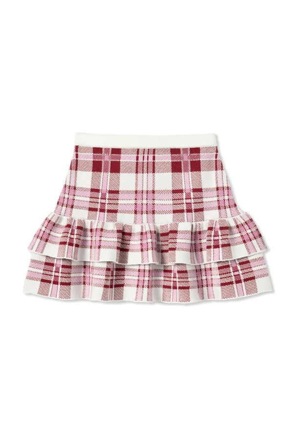 Spódnica ze wzorem w kratę marki Self-Portrait Kids stanowi wyrafinowany wybór dla miłośniczek ponadczasowej elegancji oraz subtelnej wyrazistości. Klasyczny, lekko rozkloszowany krój zwraca uwagę wyraźnym zaakcentowaniem linii talii, a podwójna falbana u dołu dodaje lekkości i dziewczęcego uroku.