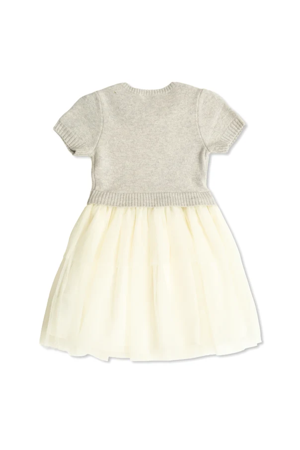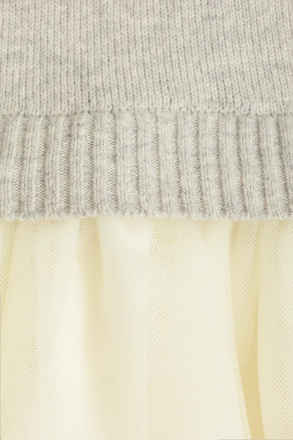 Sukienka z tiulowym dołem marki Self-Portrait Kids to wyraz subtelnej elegancji dedykowanej młodym damom. Utrzymana w stonowanej, jasnoszarej tonacji, zachwyca klasycznym, lekko rozkloszowanym krojem, który doskonale podkreśla dziecięcą sylwetkę. Górna część sukienki, wykonana z miękkiej dzianiny, zachwyca sweterkowym fasonem z krótkimi rękawami oraz okrągłym dekoltem.