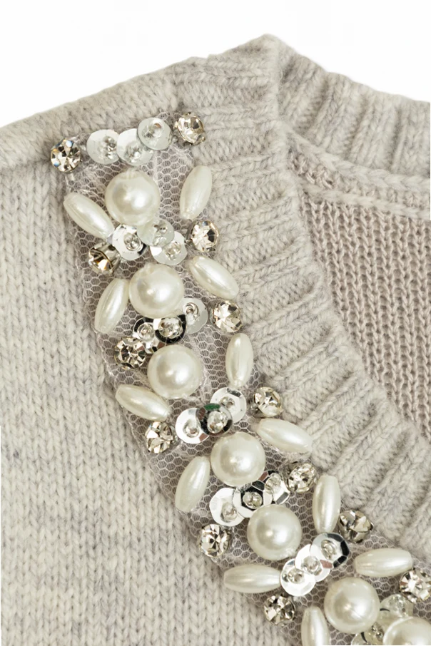 Piękne wykończenie aplikacjami z perełek i kryształków