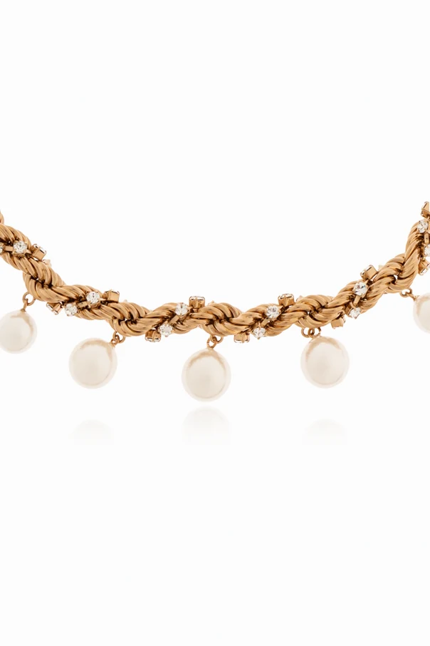 Krótki naszyjnik z kryształami od cenionej włoskiej marki Marni to wykwintna propozycja dla miłośniczek wyrafinowanej biżuterii. Utrzymany w złotym kolorze, zachwyca klasyczną, chokerową formą układającą się blisko szyi oraz dekoracyjnym, skręcanym splotem , który nadaje unikatowości i szyku.