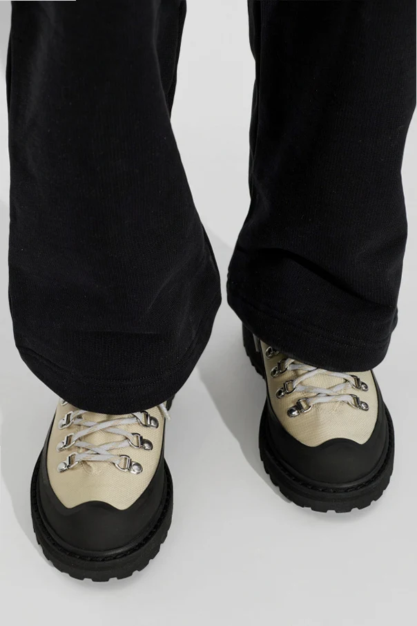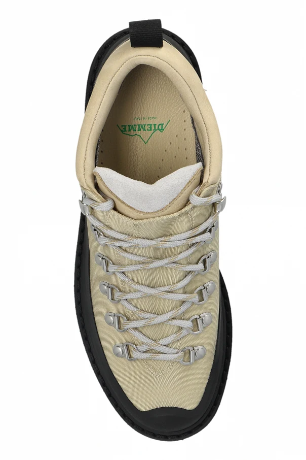 Czarna, matowa podeszwa wykonana z trwałej gumy oraz wzmacniane elementy wokół dolnej części cholewki nadają całości wyjątkowego charakteru oraz podnoszą odporność na ścieranie. Metalowe oczka D-ring i solidne hakowe mocowania, przez które prowadzone są trekkingowe, białe sznurowadła ze wzorem, zapewniają dopracowaną funkcjonalność i niepowtarzalne wykończenie.