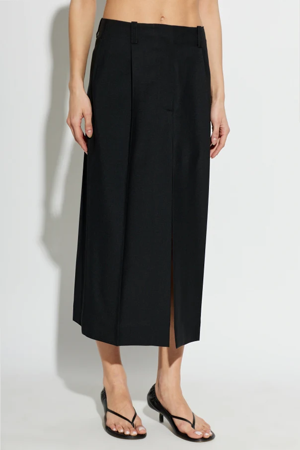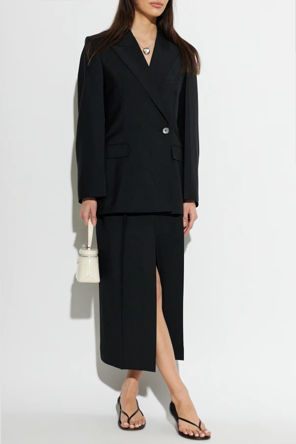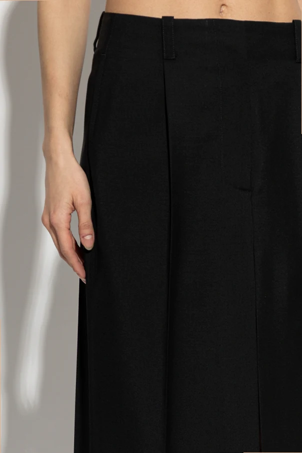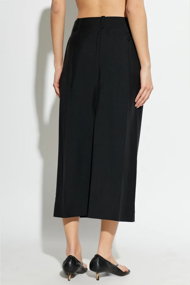 Wykonane z wysokogatunkowej wełny z dodatkiem moheru, spodnie prezentują się wyjątkowo elegancko dzięki matowemu wykończeniu tkaniny. Gładka, czarna barwa podkreśla ich ekskluzywny i minimalistyczny charakter, a dyskretne boczne kieszenie i prosty kant z tyłu stanowią świadectwo precyzyjnego rzemiosła.