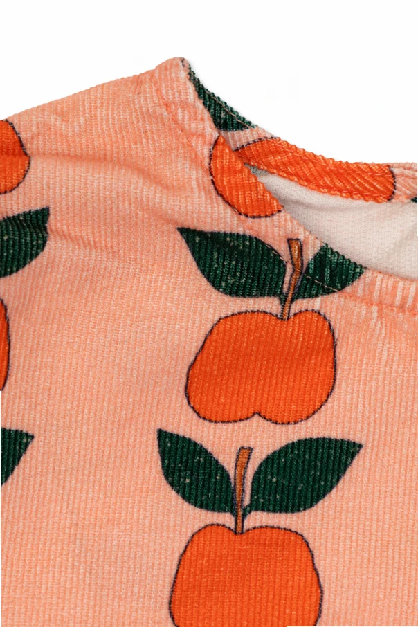 Top z motywem owocowym marki Tinycottons to połączenie subtelnej elegancji i wyrazistego stylu dedykowanego dziewczynkom. Na różowym tle króluje harmonijna kompozycja czerwono-pomarańczowych owoców i ciemnozielonych liści, podkreślona delikatnym prążkowaniem materiału. Starannie dobrana, miękka bawełna zapewnia aksamitną wygodę oraz trwałość, a luźny krój z długimi rękawami i regulowanymi ściągaczami ze sznurkiem gwarantuje pełną swobodę ruchu. Okrągły dekolt oraz unikatowy wzór sprawiają, że każda stylizacja nabiera ponadczasowego uroku, zaś wyrafinowany detal konstrukcyjny stanowi ucieleśnienie perfekcji barcelońskiego rzemiosła.