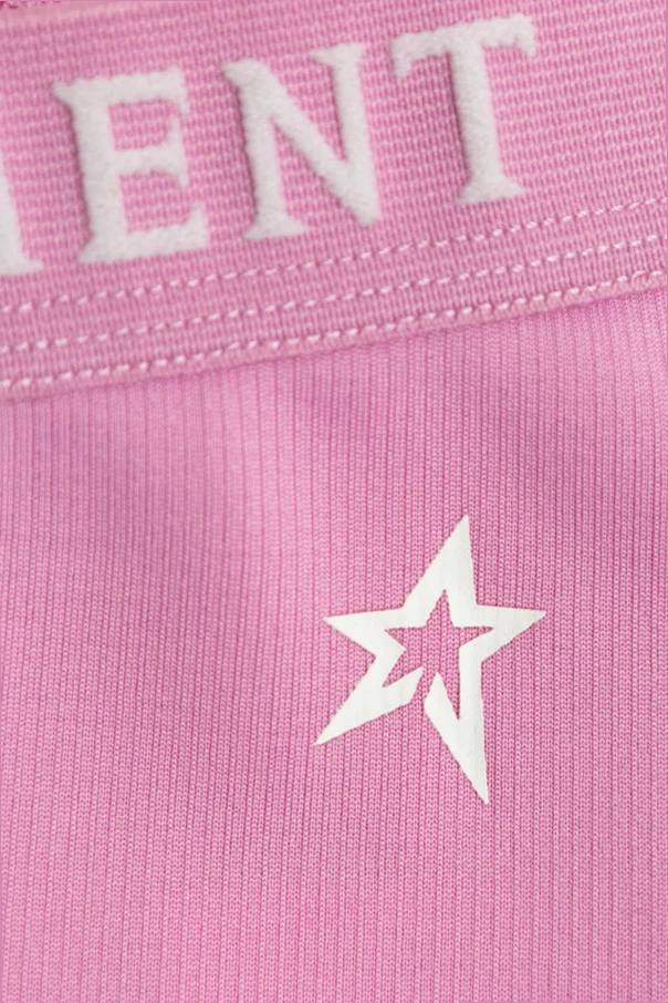 Innowacyjny materiał, wywodzący się z grupy tkanin technicznych, został wykończony od wewnątrz czarną podszewką z silikonowym, antypślizgowym nadrukiem „PERFECT MOMENT”. Efektowne przeszycia w okolicach kolan oraz subtelna, czerwono haftowana gwiazda subtelnie akcentują sportowy szyk.