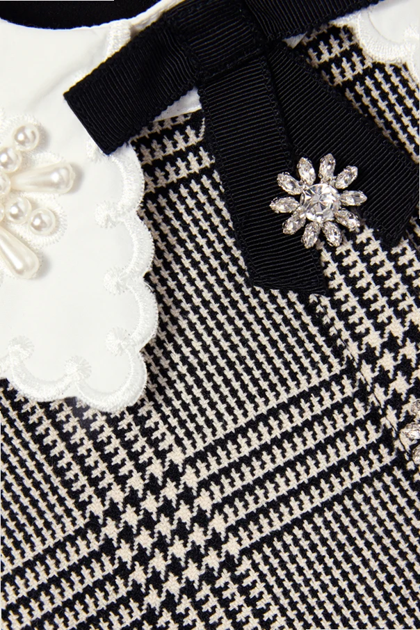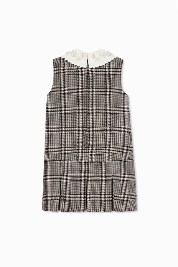 Sukienka w pepitkę autorstwa Self-Portrait Kids urzeka klasyczną elegancją i niepowtarzalnym wdziękiem. Wysublimowany fason trapezowy, pozbawiony rękawów, doskonale podkreśla sylwetkę młodych dam w wieku 4-14 lat. Uwagę przyciąga czarno-biały wzór pepitki harmonijnie spleciony z motywem delikatnej kraty, wyrażając ponadczasowy styl.