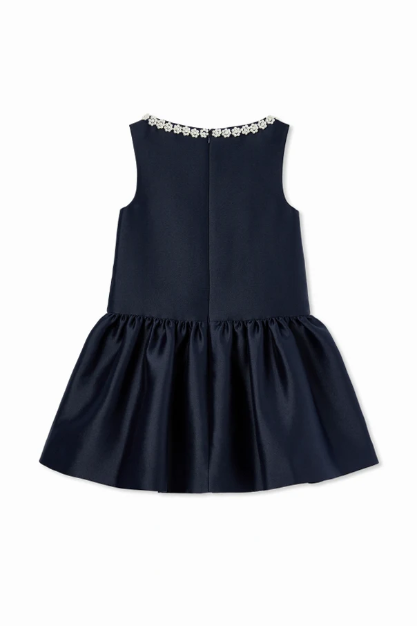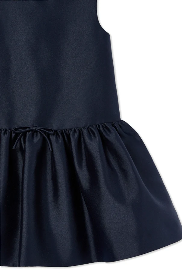 Sukienka bez rękawów od Self-Portrait Kids to kwintesencja wyrafinowanego stylu w granatowym odcieniu. Klasycznie rozkloszowany fason z wyraźnie zaznaczoną talią oraz wyrafinowanym, marszczonym dołem nadaje sylwetce lekkości i ponadczasowej elegancji. Wykonana z gładkiego, lekko połyskującego materiału wysokiej jakości, łączy w sobie subtelność jedwabiu i trwałość satyny, podkreślając ekskluzywny charakter kreacji.