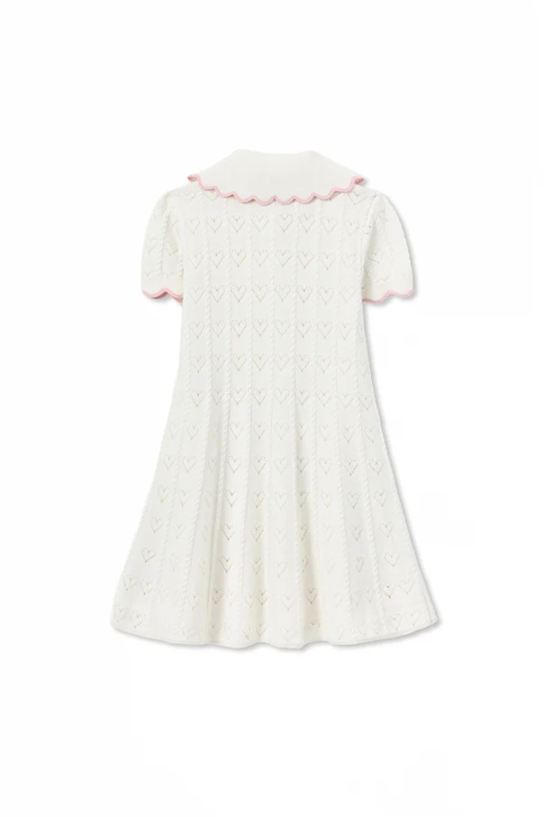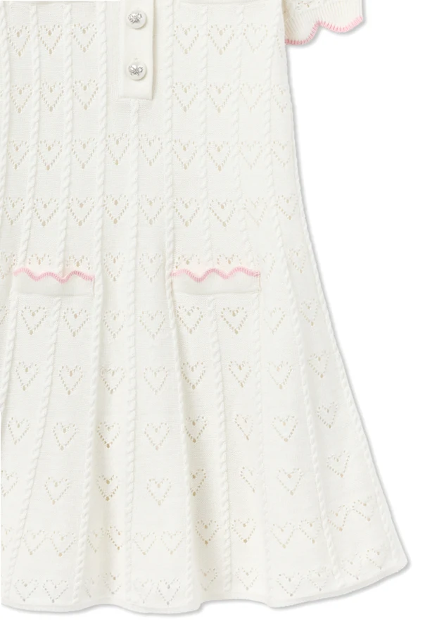 Rozkloszowany fason do kolan gwarantuje swobodę ruchu, a krótki rękaw wpływa na komfort noszenia w cieplejsze dni. Efektowne dziergane pasy pionowe oraz ekskluzywna miękkość materiału sprawiają, że każda młoda dama poczuje się unikatowo i wyjątkowo. Projekt kolekcji Self-Portrait Kids został stworzony z myślą o wysmakowanych gustach, co widać w dbałości o detale wykończenia.
