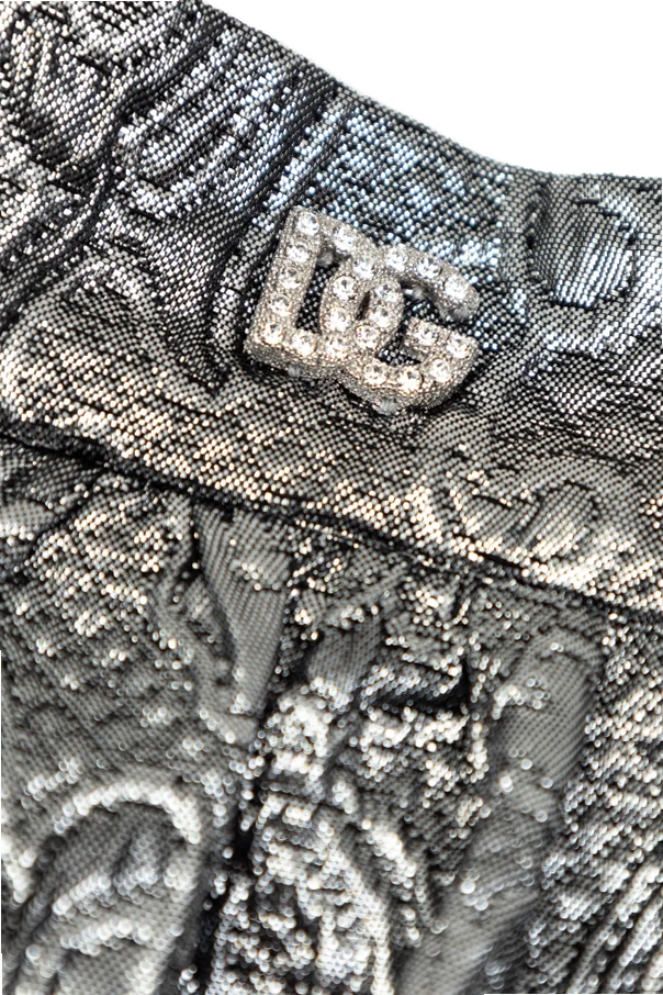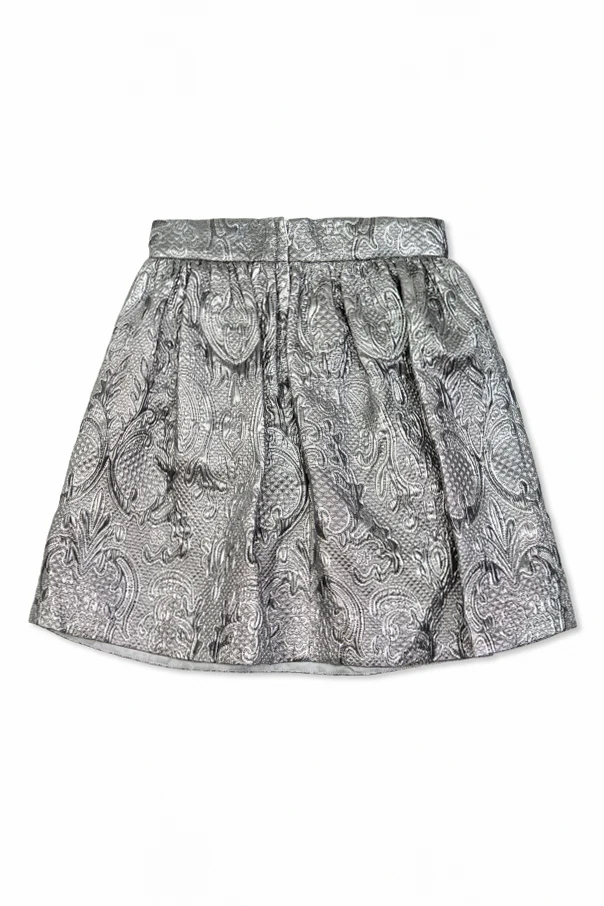 Spódnica z lureksową nicią marki Dolce & Gabbana Kids uwodzi ponadczasową elegancją i wyrafinowaną formą. Srebrny kolor, podkreślony misternym, barokowym wzorem o wypukłej strukturze, nadaje całości luksusowego charakteru i pozwala świetliście wyróżnić się w każdej stylizacji.
