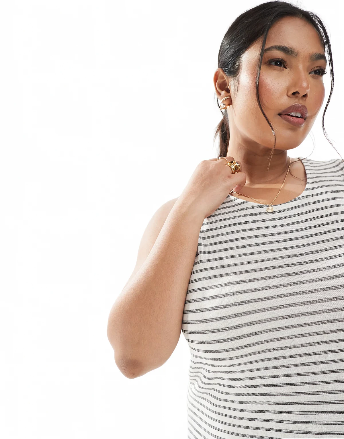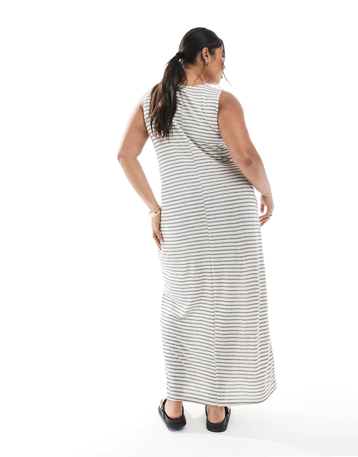– Sukienka maxi bez rękawów w czarno-białe paski
