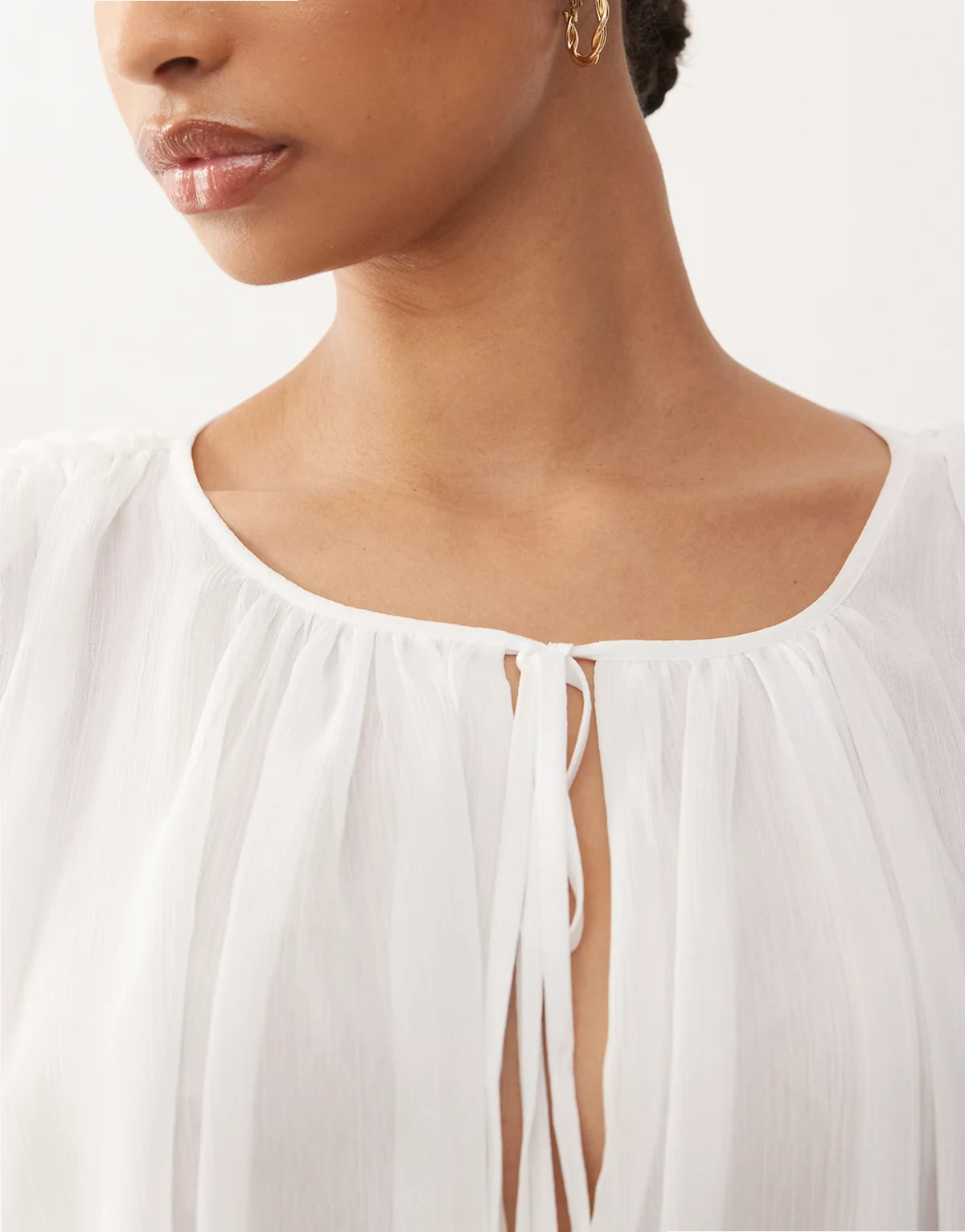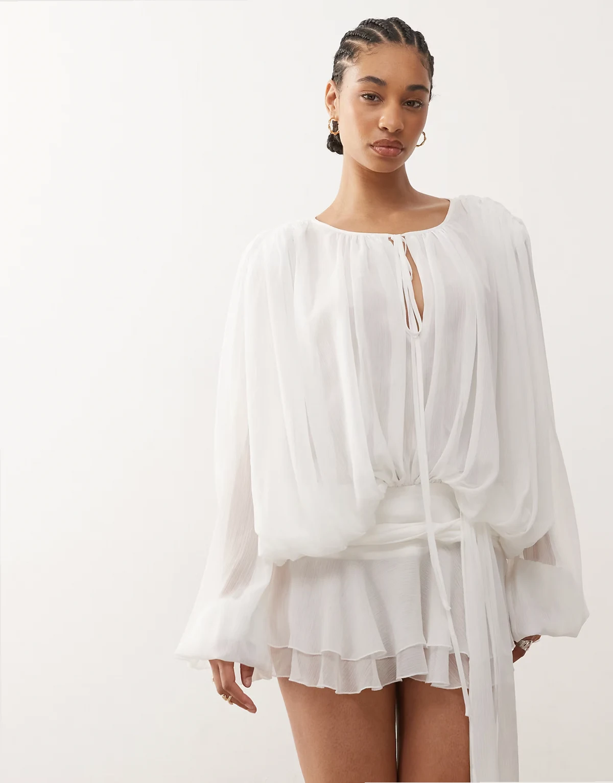 – Elements – Biała szyfonowa sukienka mini z drapowaniem i ozdobnym dołem