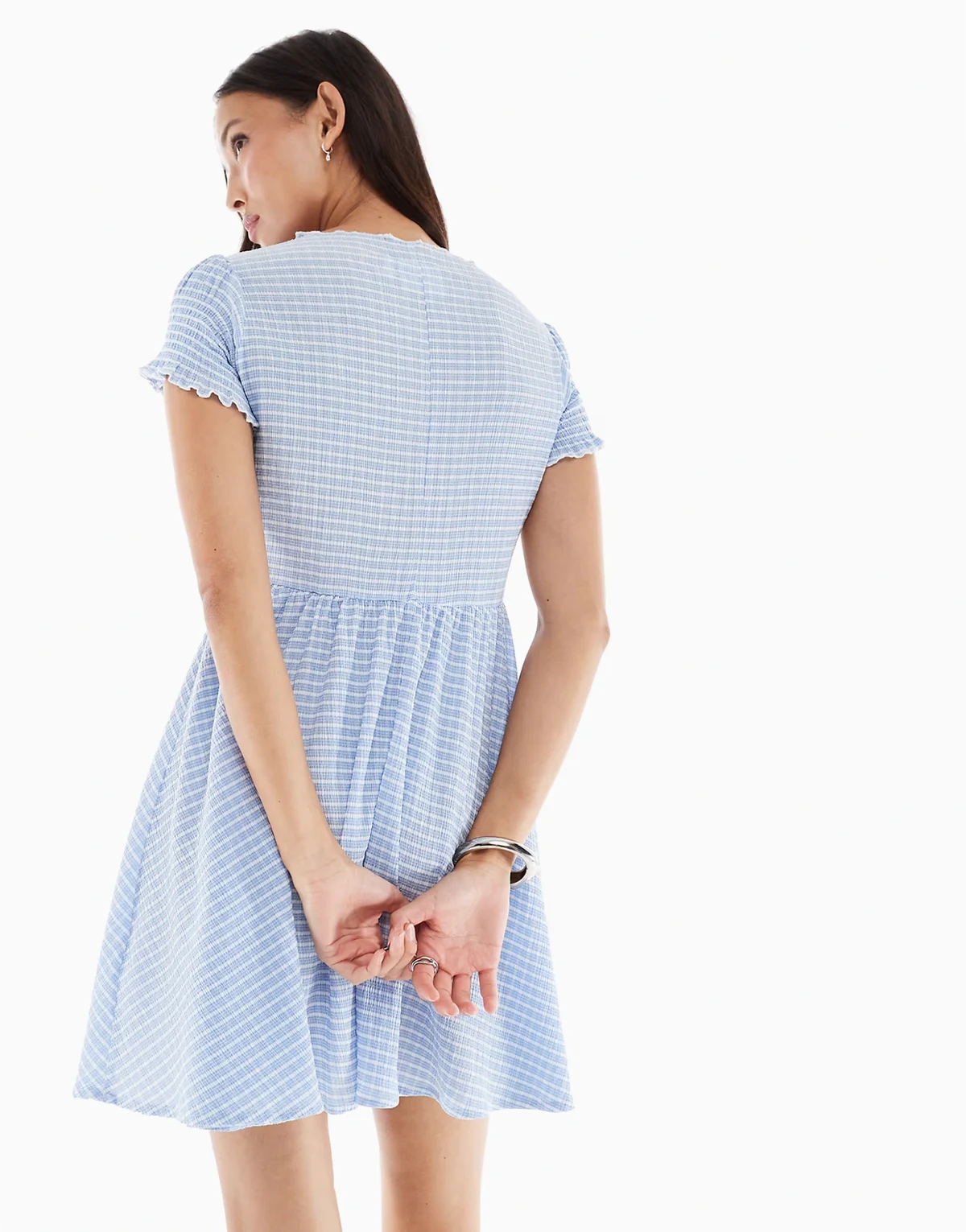 Exclusive – Jasnoróżowa bawełniana sukienka mini typu milkmaid z bufkami i zakładkami na biodrach