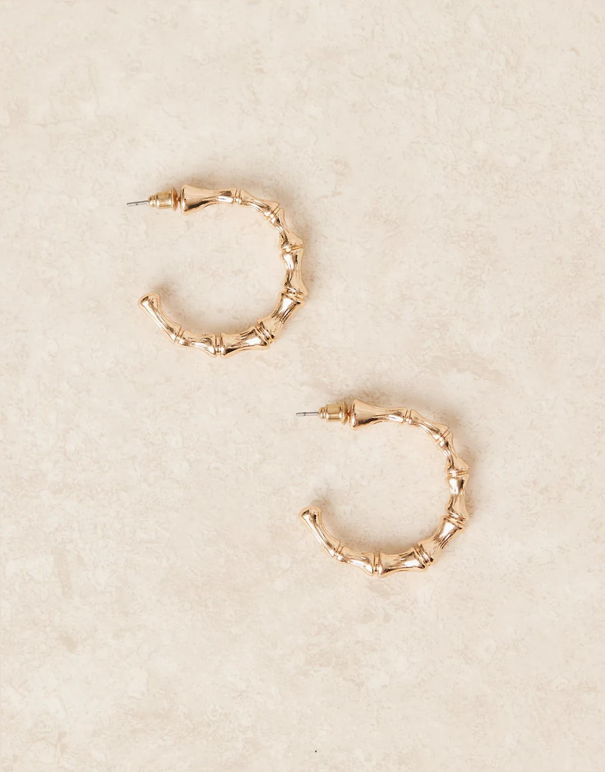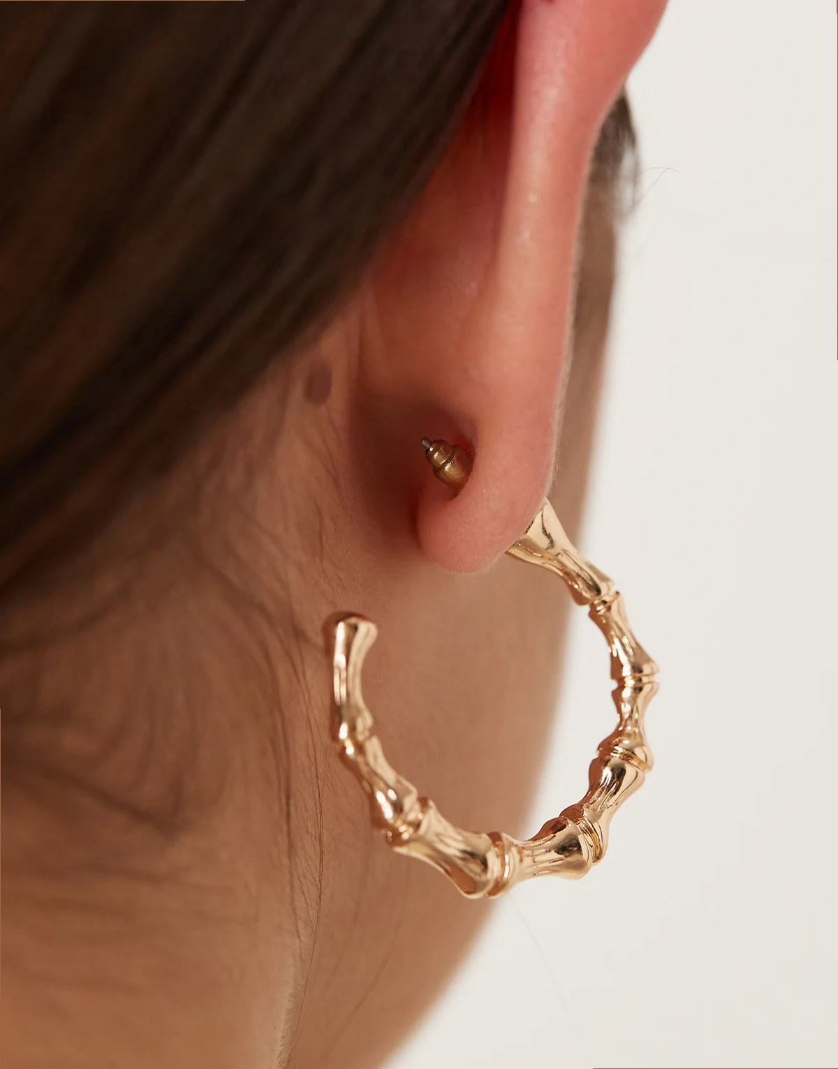 – Duże kolczyki-koła imitujące bambus w złotym kolorze