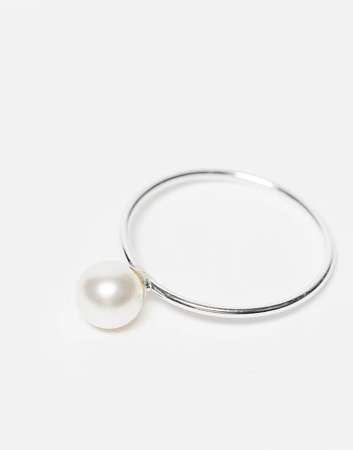 – Asymetryczny pierścionek z efektem stopienia w kolorze srebra