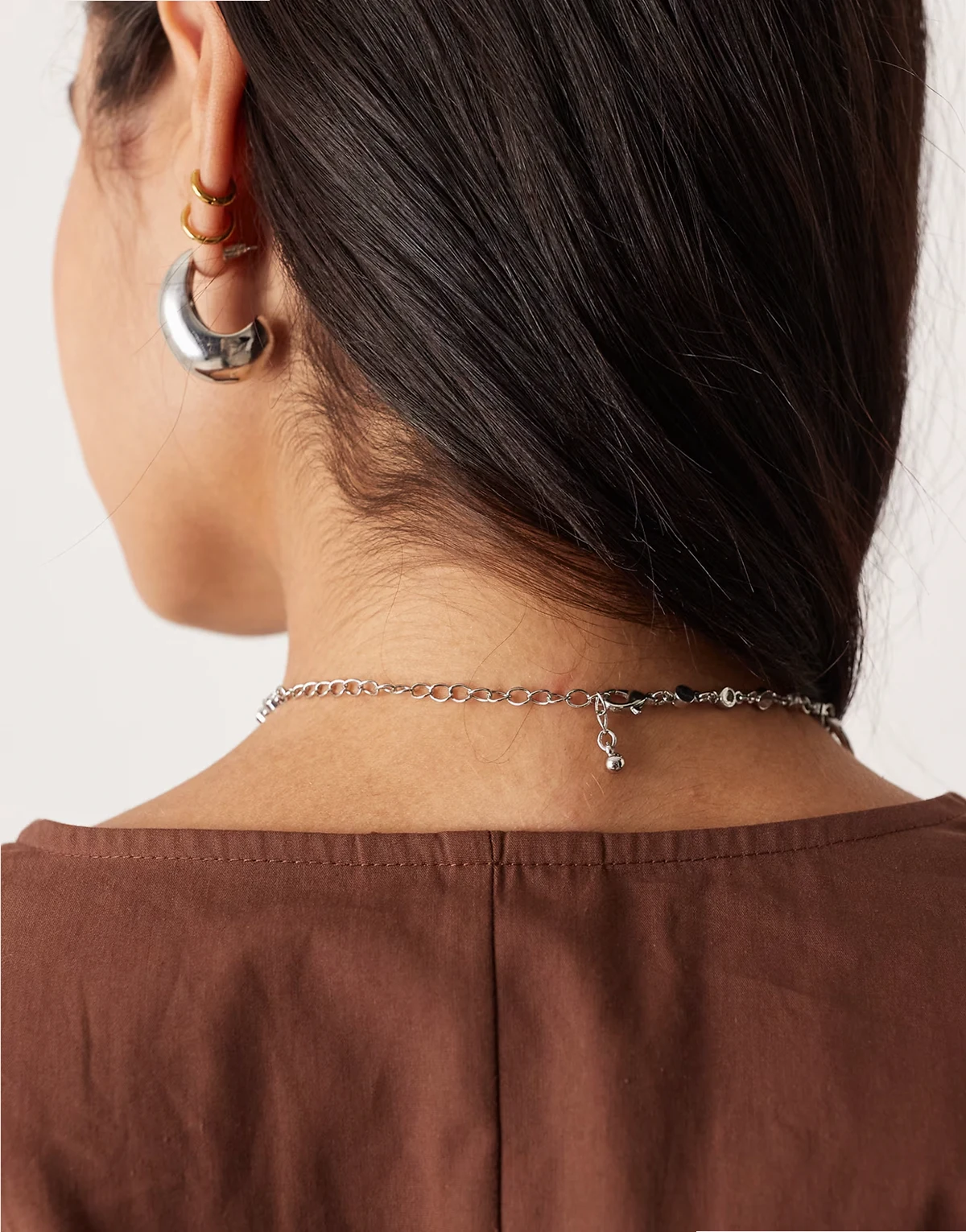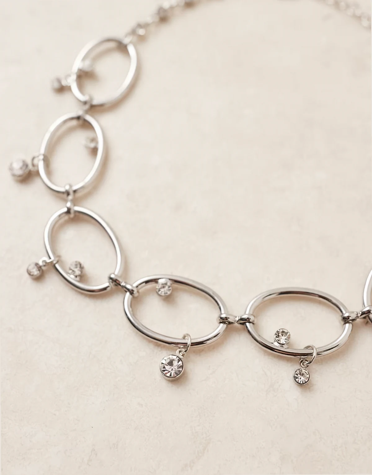 – Naszyjnik typu choker w kolorze srebra z bezbarwnymi kryształkami