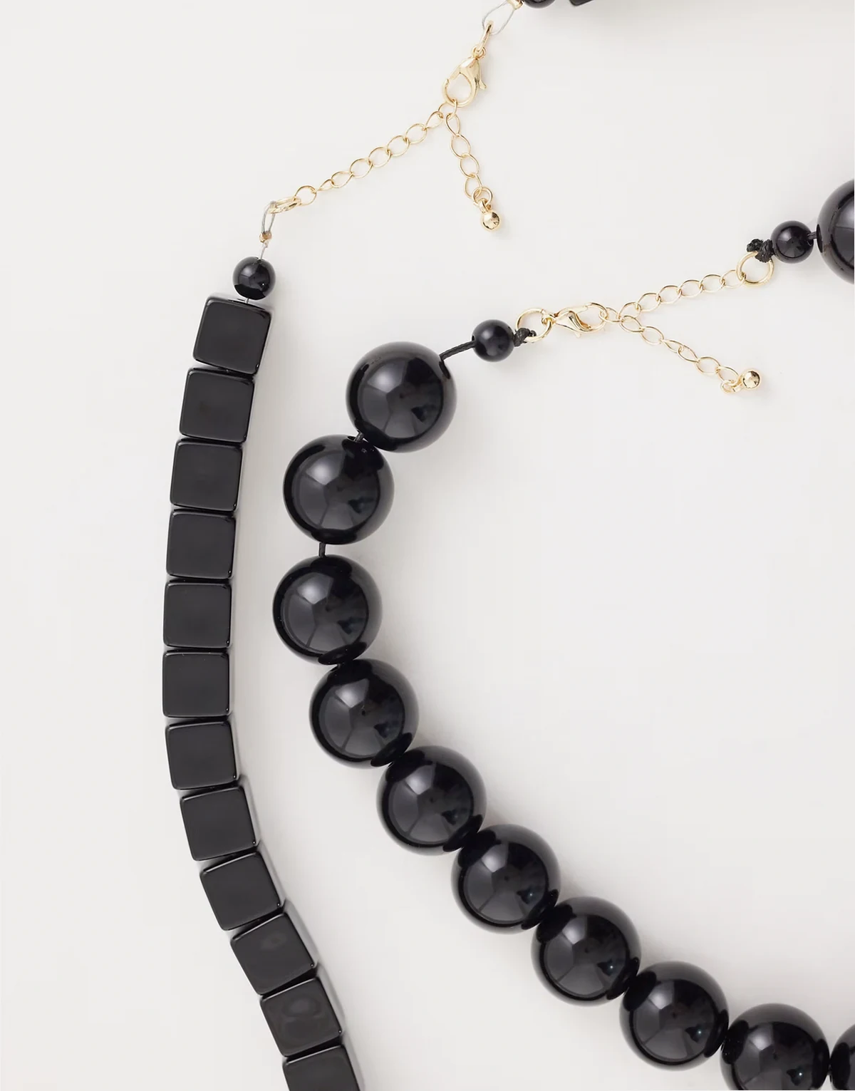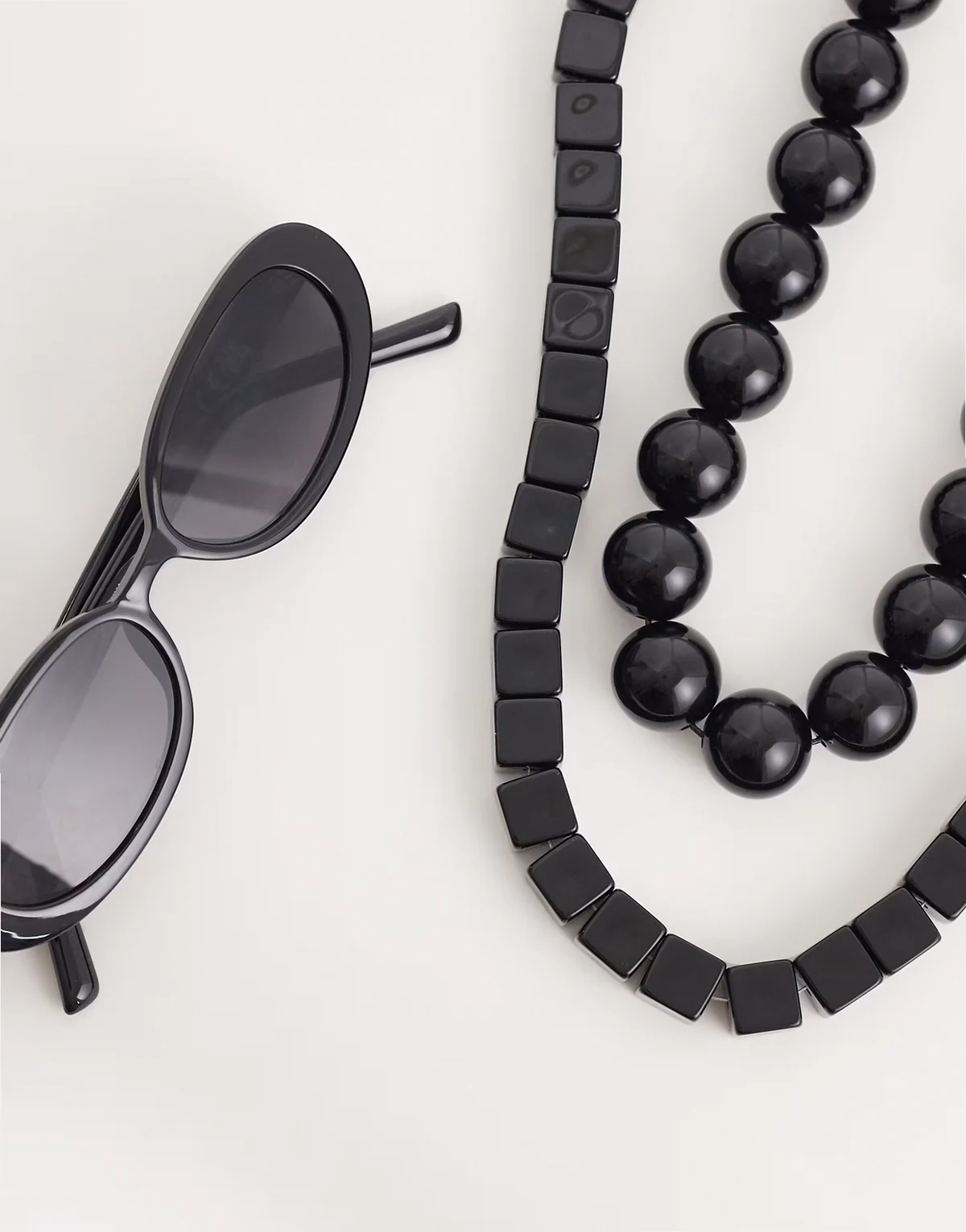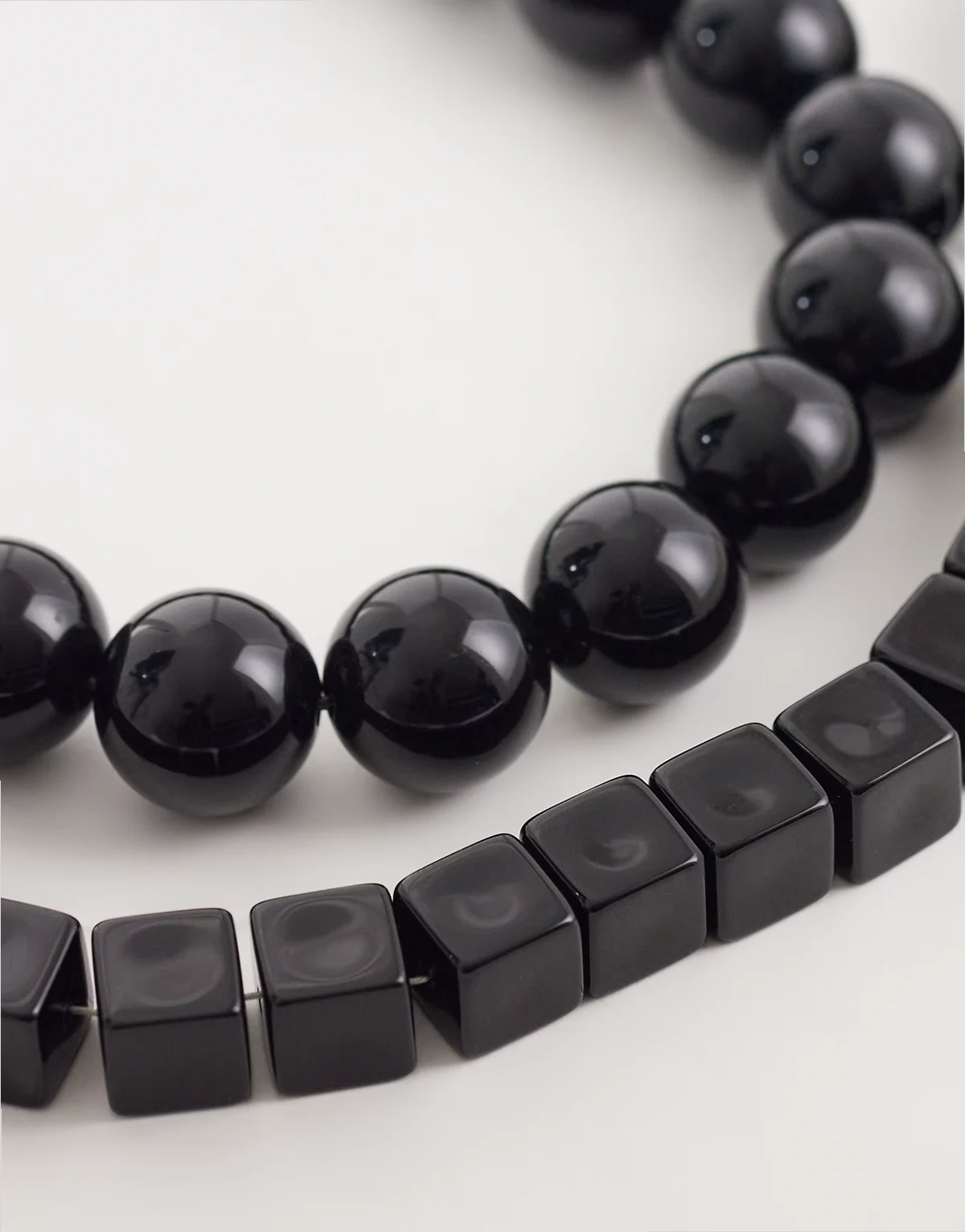– Zestaw 2 czarnych długich naszyjników z dużymi koralikami